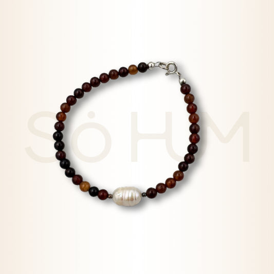 Brățară cu Granat Portocaliu și perlă naturală Baroque pentru pasiune, creativitate și regenerare