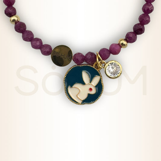 Brățară cu cristale fațetate de rubin și Mandala Iepurelui lunar pentru magnetismul dragostei