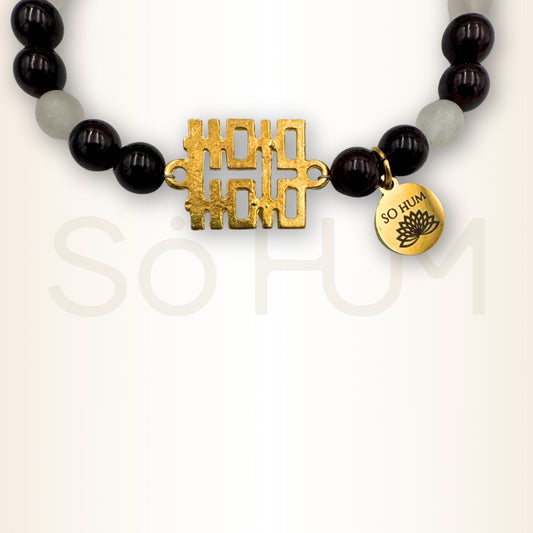 Brățara cu granat și cuarț roz cu Double Happiness pentru fericire în cuplu
