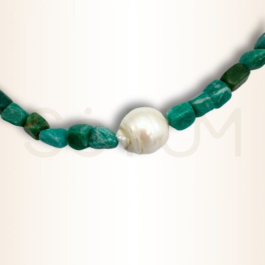 Colier cu Amazonit și perlă naturală Baroque pentru exprimare autentică și echilibru