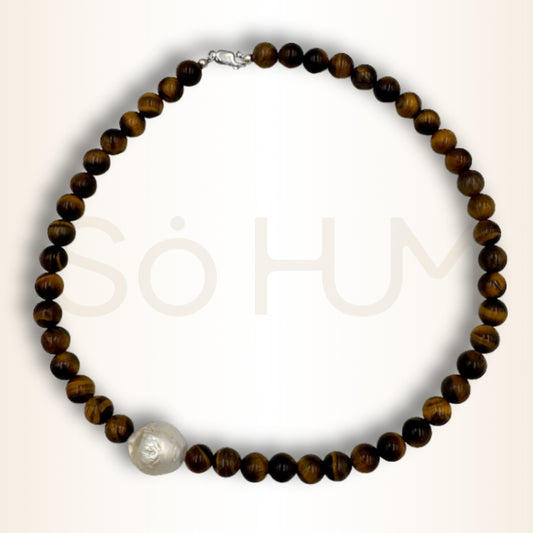 Colier cu Ochi de Tigru și perlă naturală Baroque pentru putere, forță și rezolvări rapide