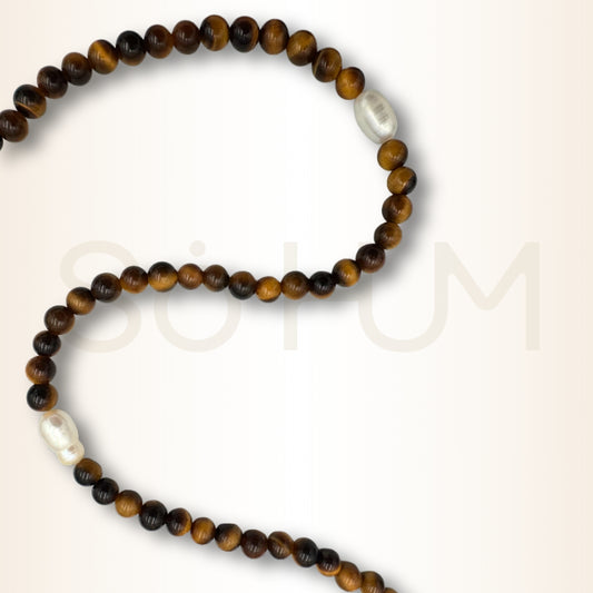 Colier dublu cu Ochi de Tigru și perle naturale Baroque pentru putere, forță și rezolvări rapide