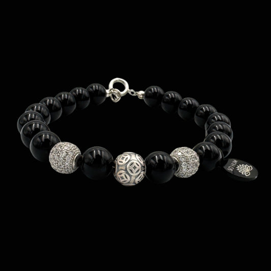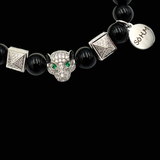 Brățară cu Jaguar (Arhetip Șamanic), Onix negru și piramidele puterii pentru protecție, forță și intuiție