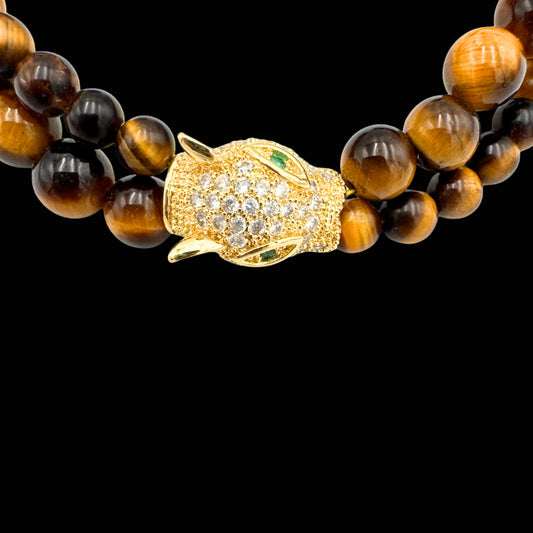 Brățară cu Jaguar (Arhetip Șamanic) și Ochi de Tigru pentru forță și încredere în sine