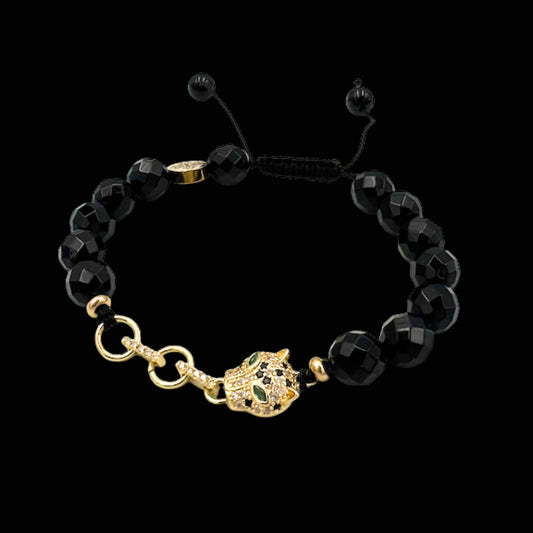 Brățară cu Jaguar (Arhetip Șamanic) și Onix Negru fațetat pentru forță și istețime