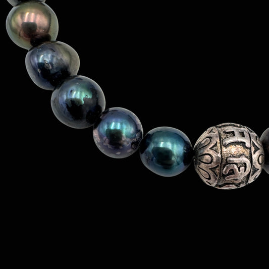 Brățară cu mantra Om Mani Padme Hum și Perle negre pentru protecție și compasiune