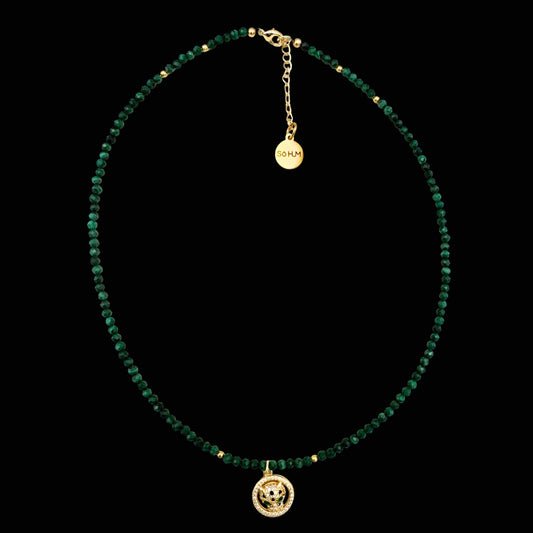Colier cu Jaguar (Arhetip Șamanic) și Malachit fațetat pentru putere și vitalitate