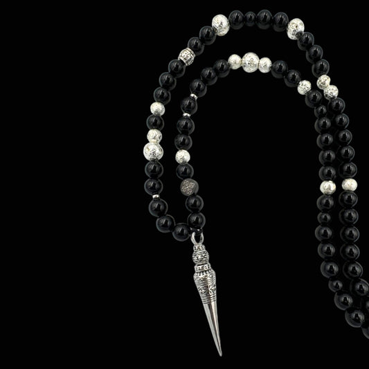 Colier cu Phurba, Onix Negru și Rocă vulcanică pentru protecție, putere și echilibru interior