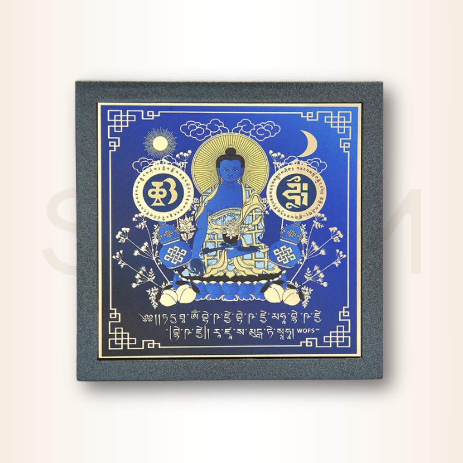 Pentru protecție la nivel profund, spiritual și energetic, legătura cu Buddha Medicine este de neprețuit. Cunoscut și sub numele de Regele Vindecător sau Regele Luminii Lapis Lazuli, el este venerat în tradiția Mahayana ca cel mai puternic vindecător divin. Potrivit sutrei Buddha Medicine, jurămintele sale includ vindecarea celor născuți cu boli, sprijinirea celor neajutorați și eliberarea celor afectați de suferințe fizice și mentale. Oricine îi cere ajutorul cu inimă sinceră este binecuvântat cu susținerea sa. Într-o mână, el ține planta Myrobalan, considerată în medicina tibetană remediul suprem împotriva emoțiilor toxice precum dorința, furia și ignoranța, iar în cealaltă un vas cu nectar vindecător.