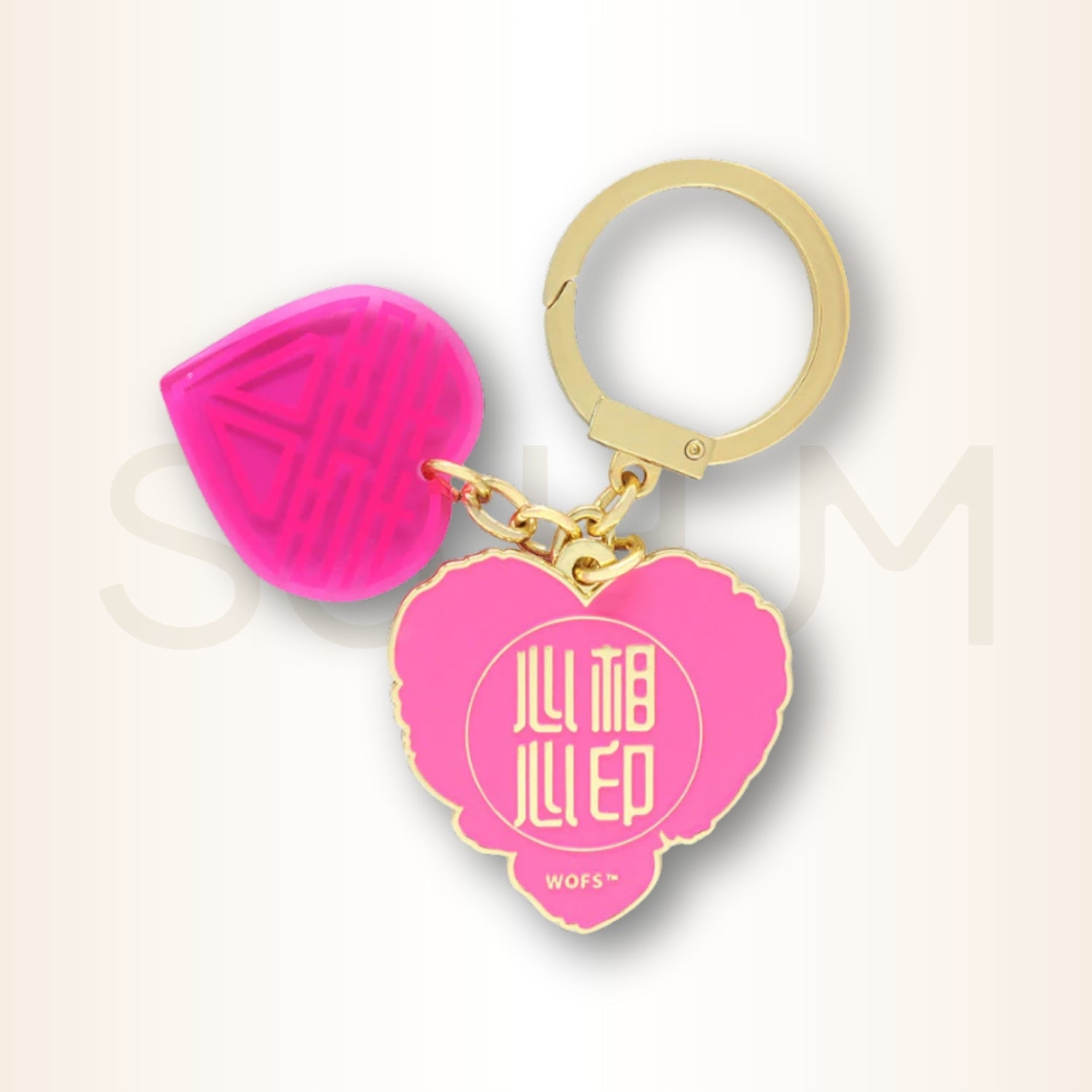 Această amuletă pentru iubire înfățișează simbolul puternic Double Happiness, un simbol din cultura chinezească care reprezintă relații fericite și romantism de lungă durată. Decorată cu bujorul, floarea iubirii, transmite mesajul „Xin Xin Xiang Yin”, care înseamnă „inimă lângă inimă în armonie desăvârșită”, o legătură emoțională profundă între doi suflete pereche.