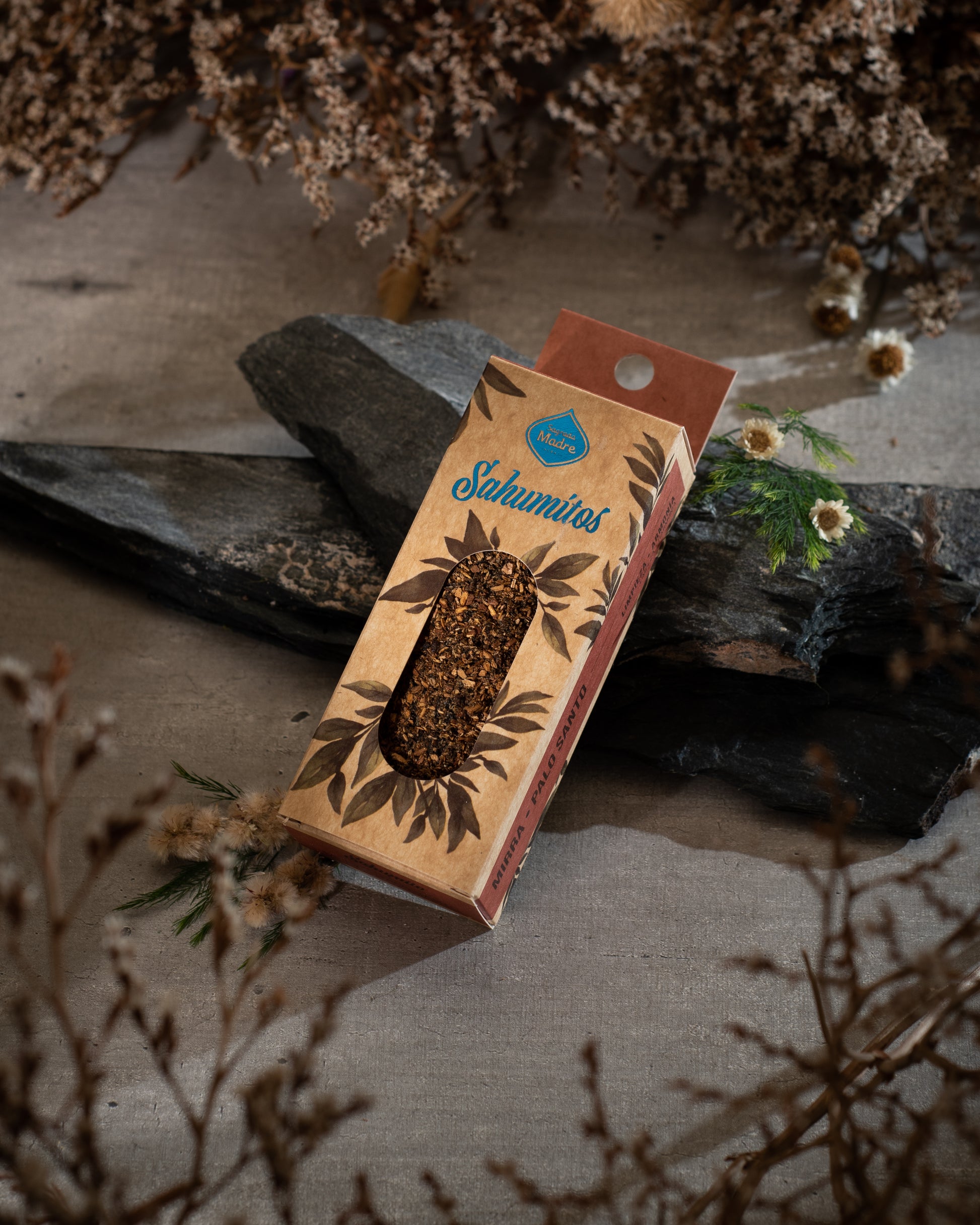 Baghetă S de smudging cu Smiră și Palo Santo pentru curățare energetică și armonizare (SAGRADA MADRE – Sahumito)