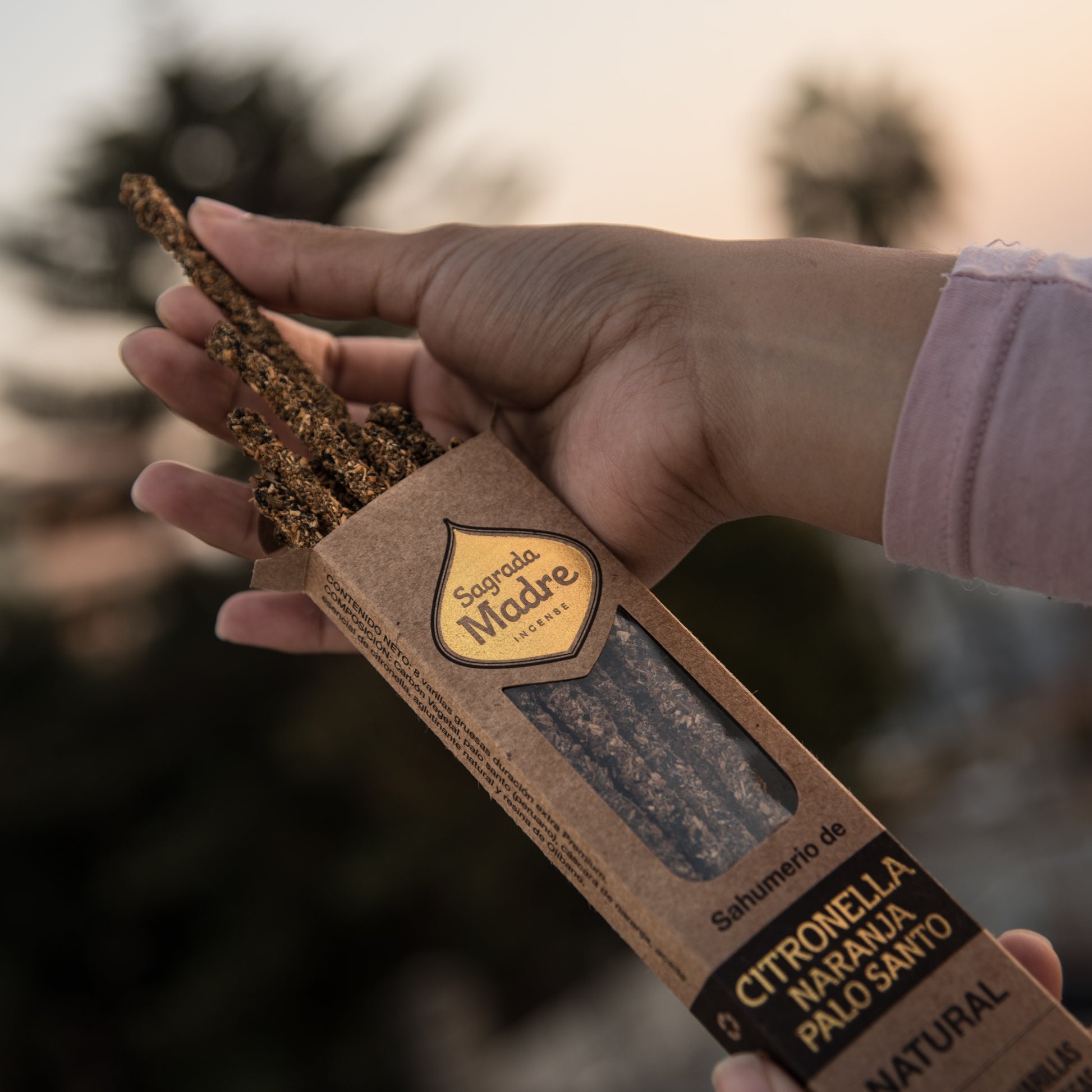 Bețișoare parfumate cu Citronela, Portocală și Palo Santo pentru protecție și energie (SAGRADA MADRE – Natural)