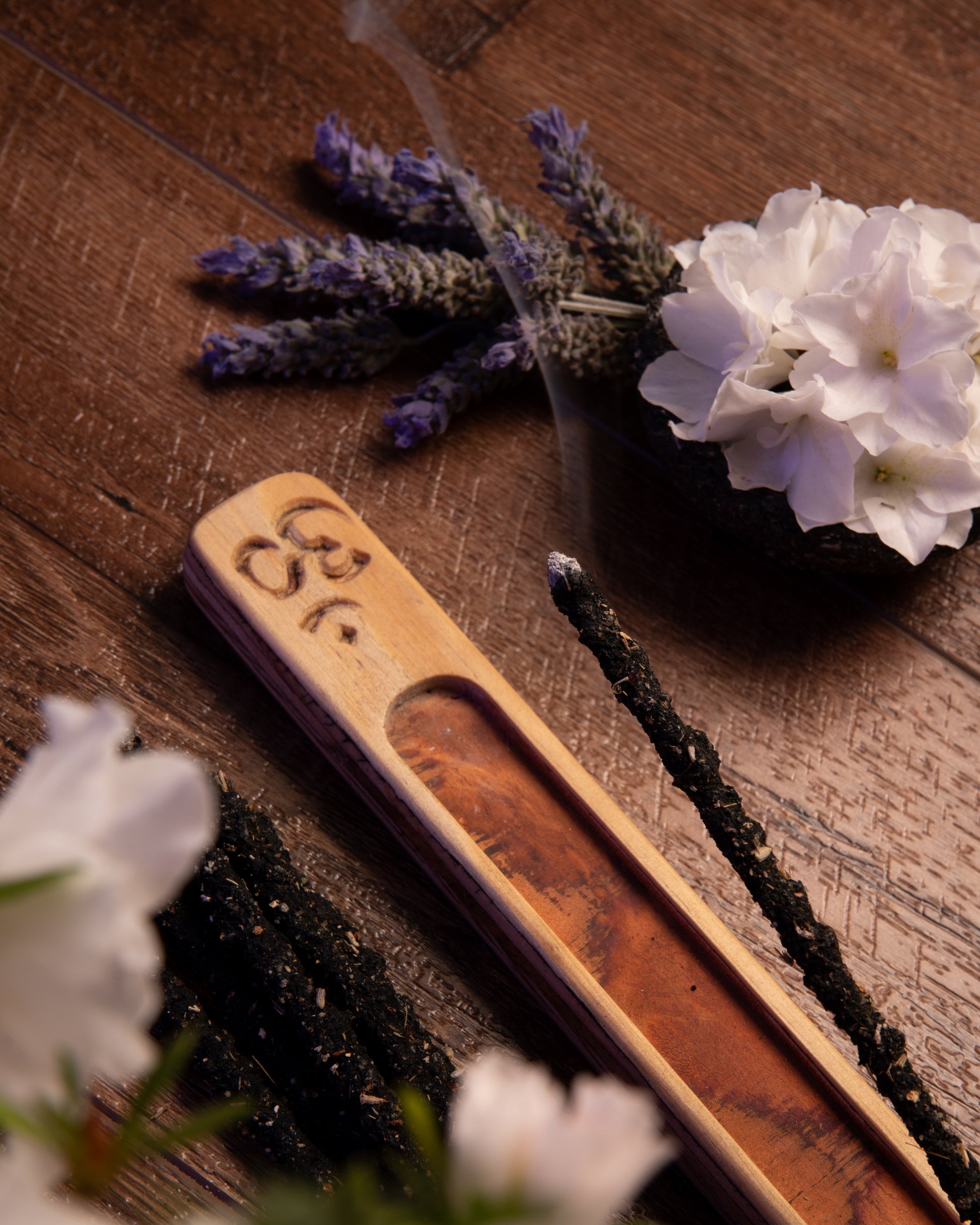 - Aprinde un bețișor și așează-l într-un suport special pentru fumigație.