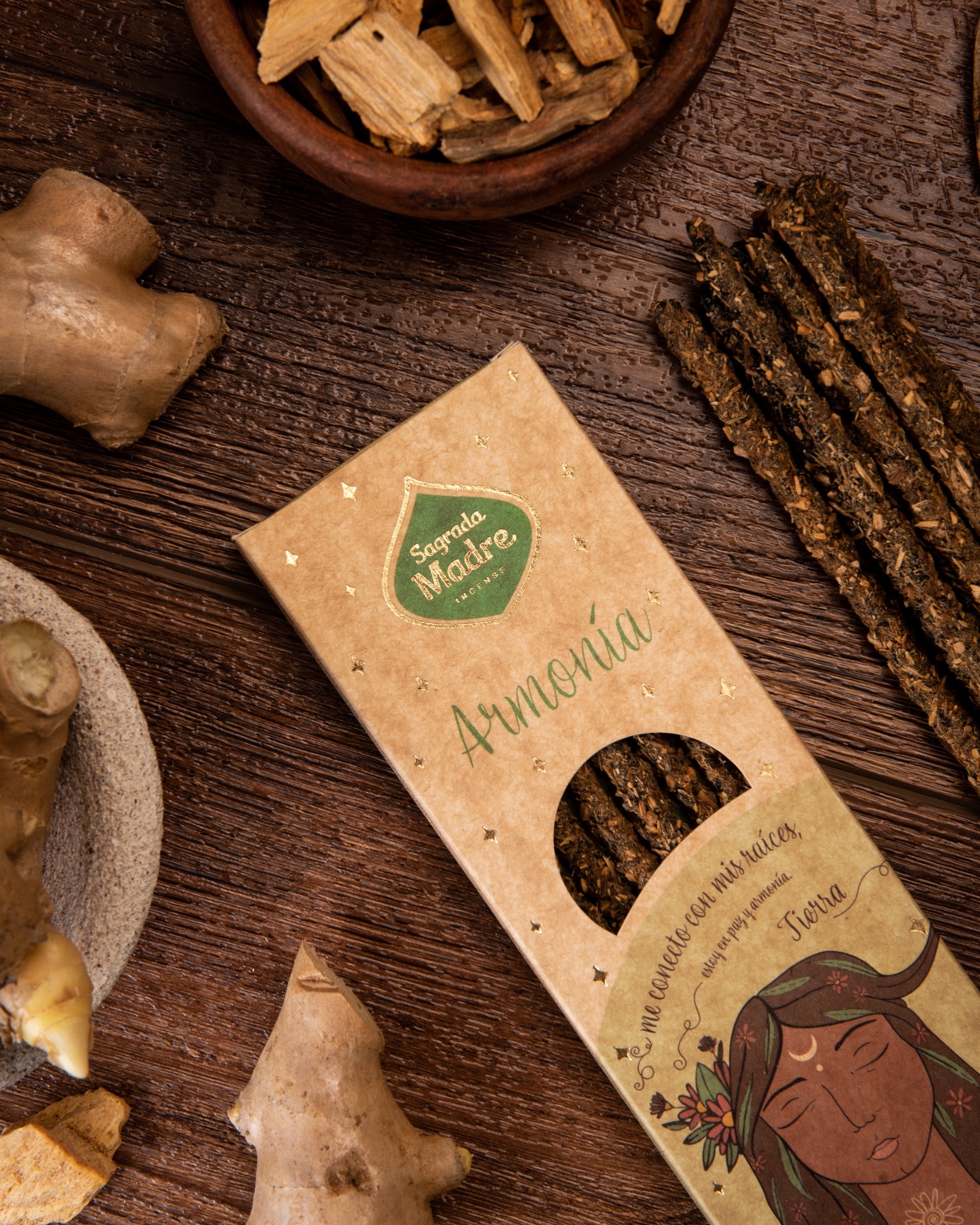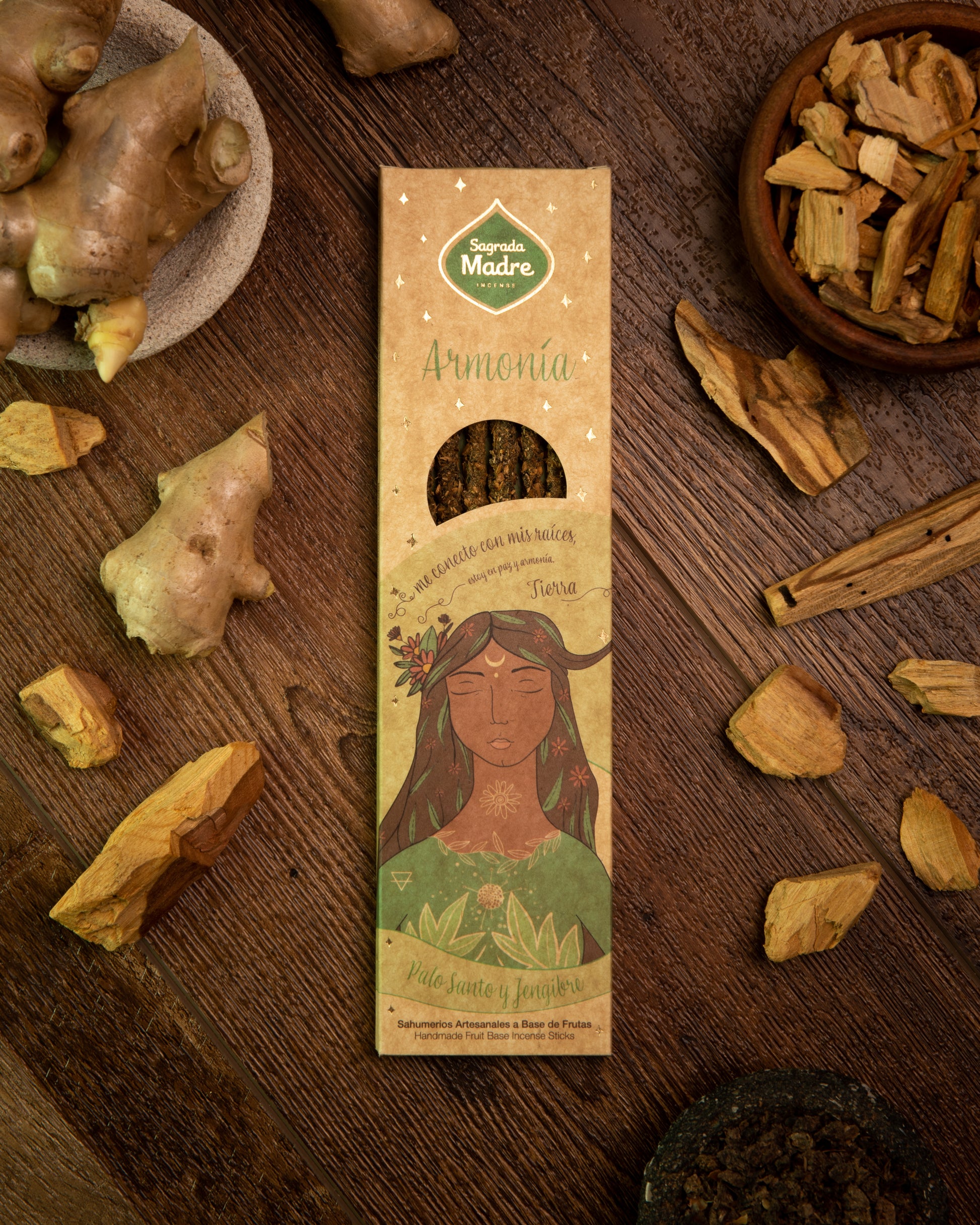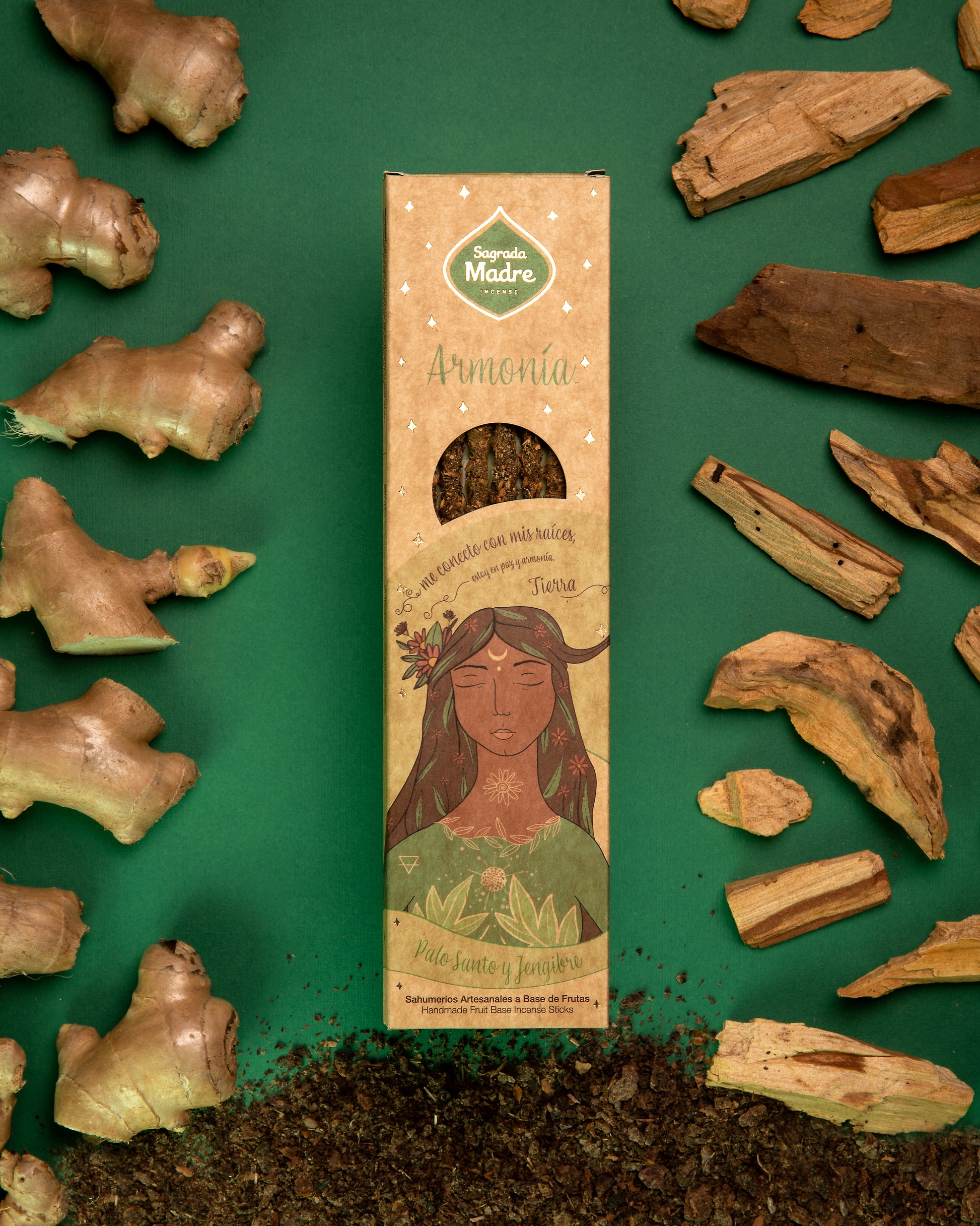Bețișoare parfumate PĂMÂNT cu Palo Santo și Ghimbir pentru armonie și stabilitate (SAGRADA MADRE – 5 elemente)