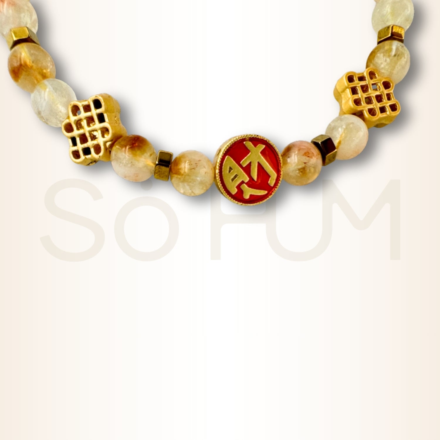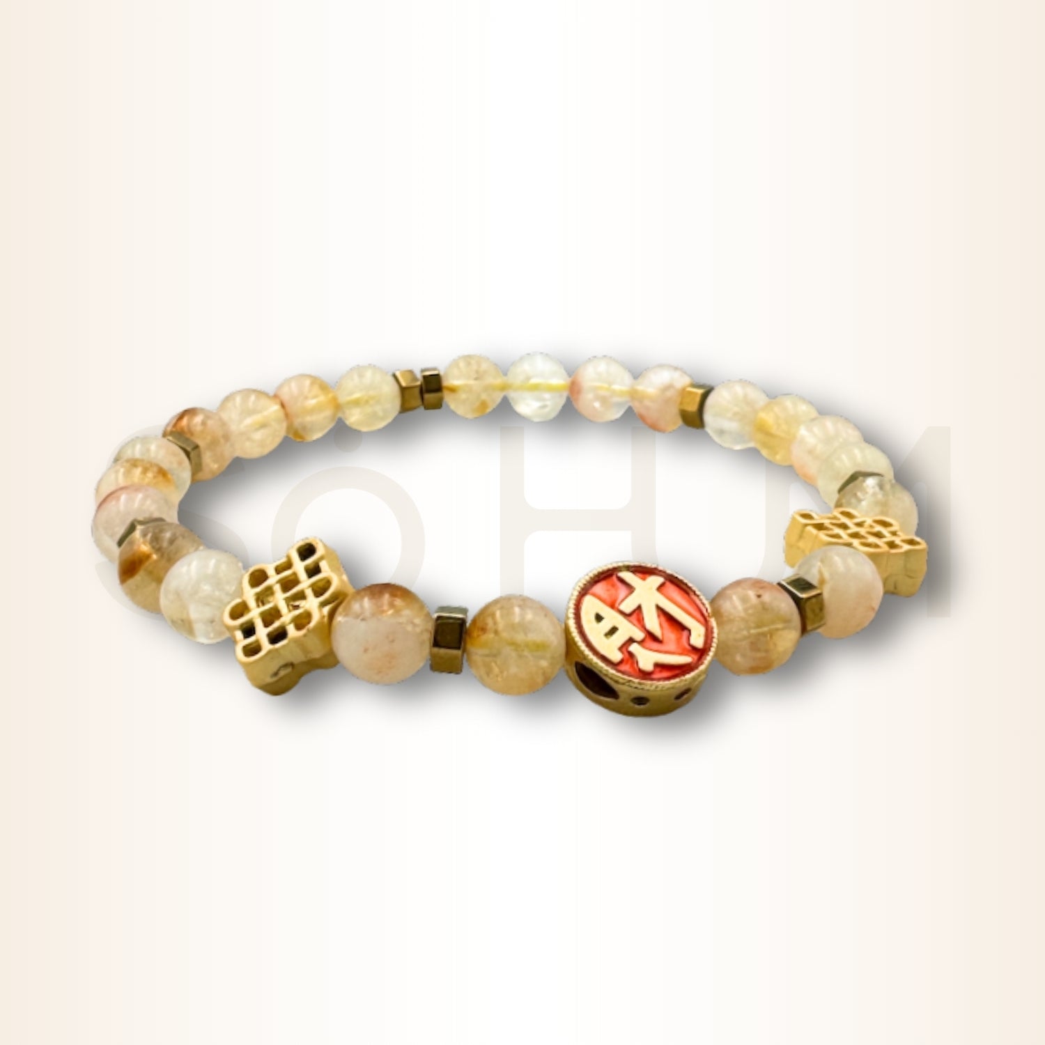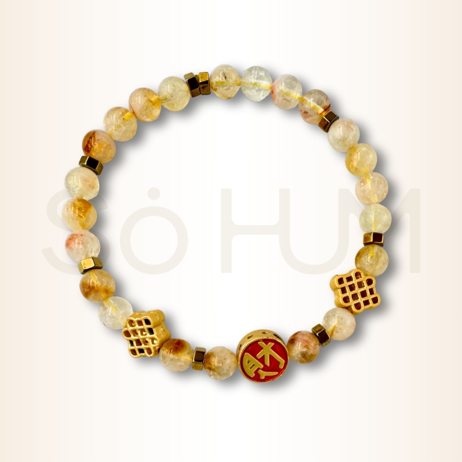 Brățară cu citrin natural, Nodul mistic și Mandala banilor pentru prosperitate și abundență