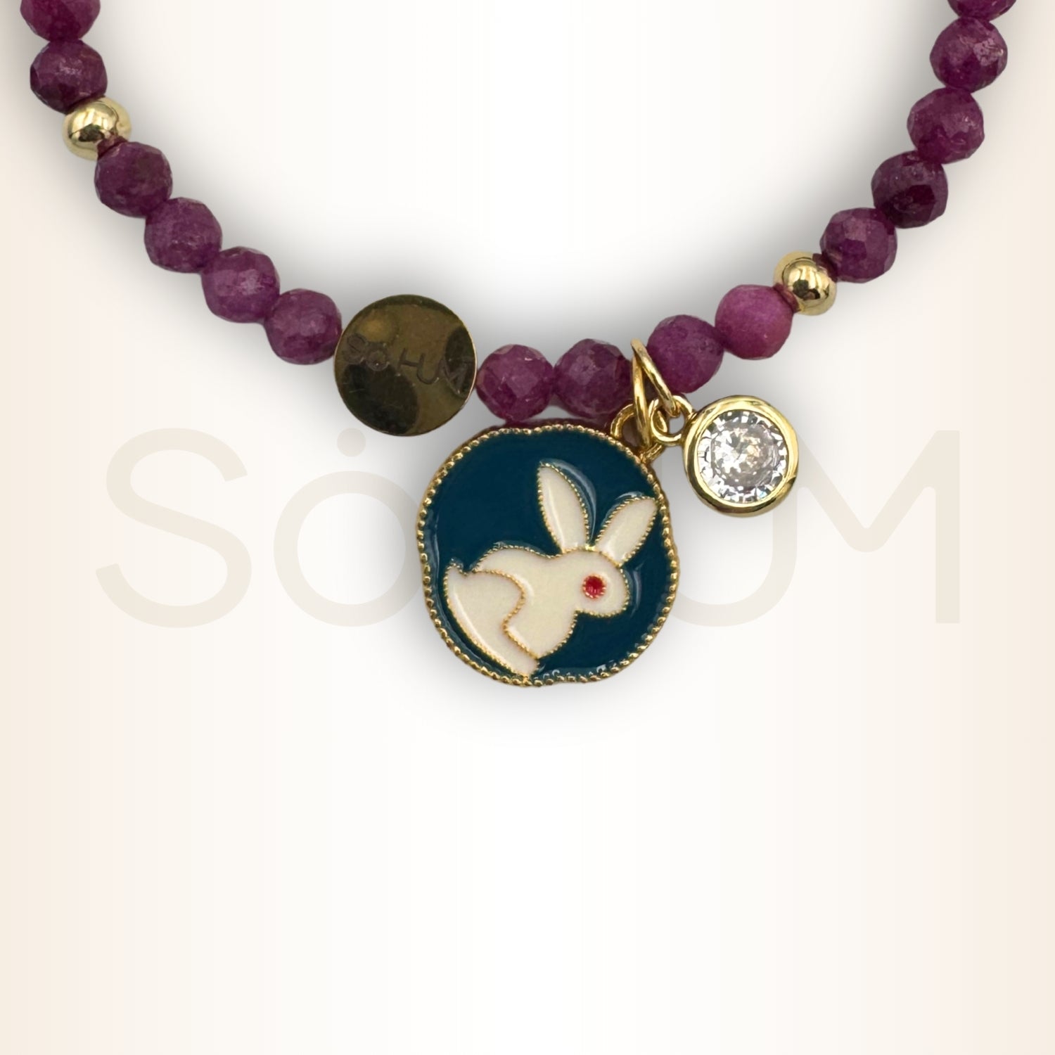 Această brățară este perfectă pentru cei care își doresc să atragă dragostea adevărată, să radieze carismă și să dezvolte relații armonioase. Combinând vibrațiile rafinate ale rubinului cu simbolistica profundă a Iepurelui lunar, această bijuterie devine un catalizator energetic pentru iubire, farmec personal și conexiuni profunde.