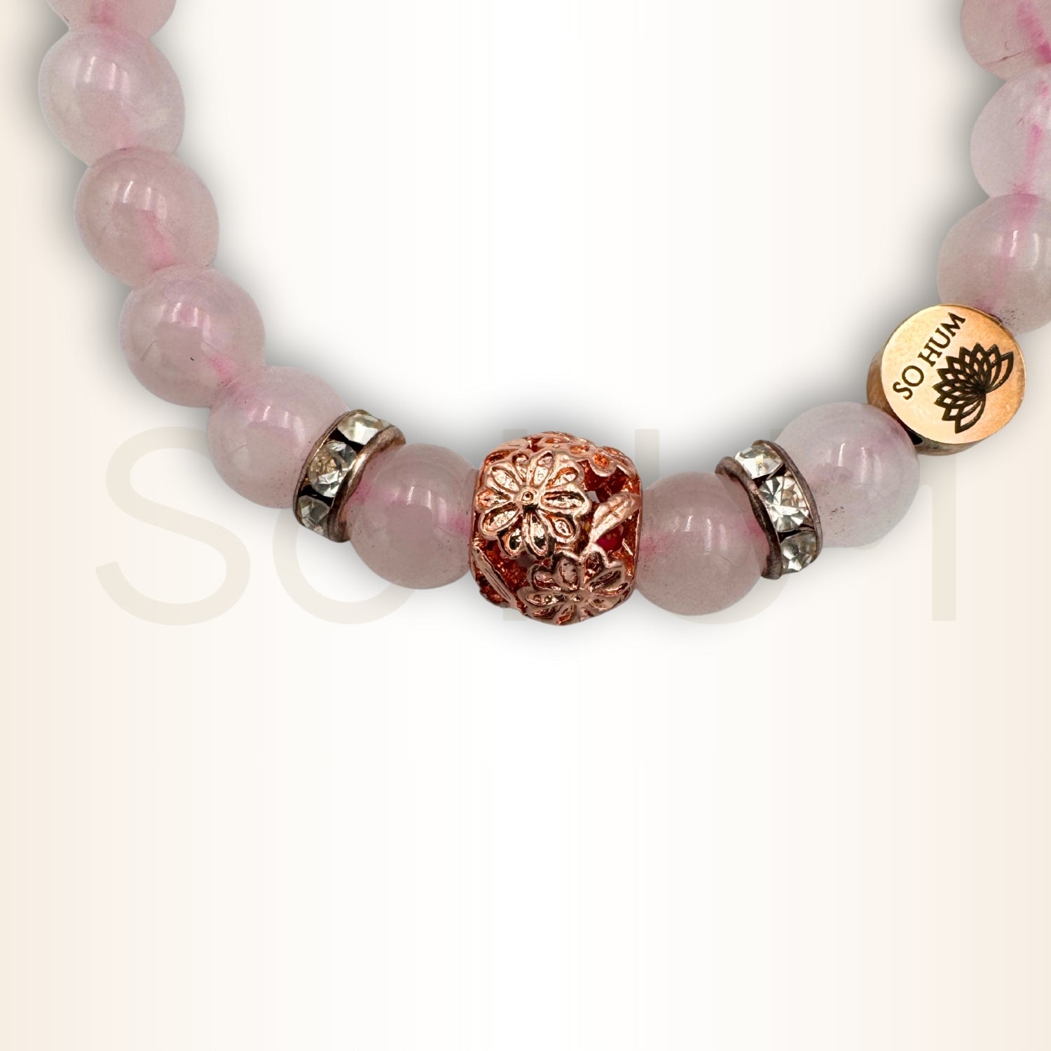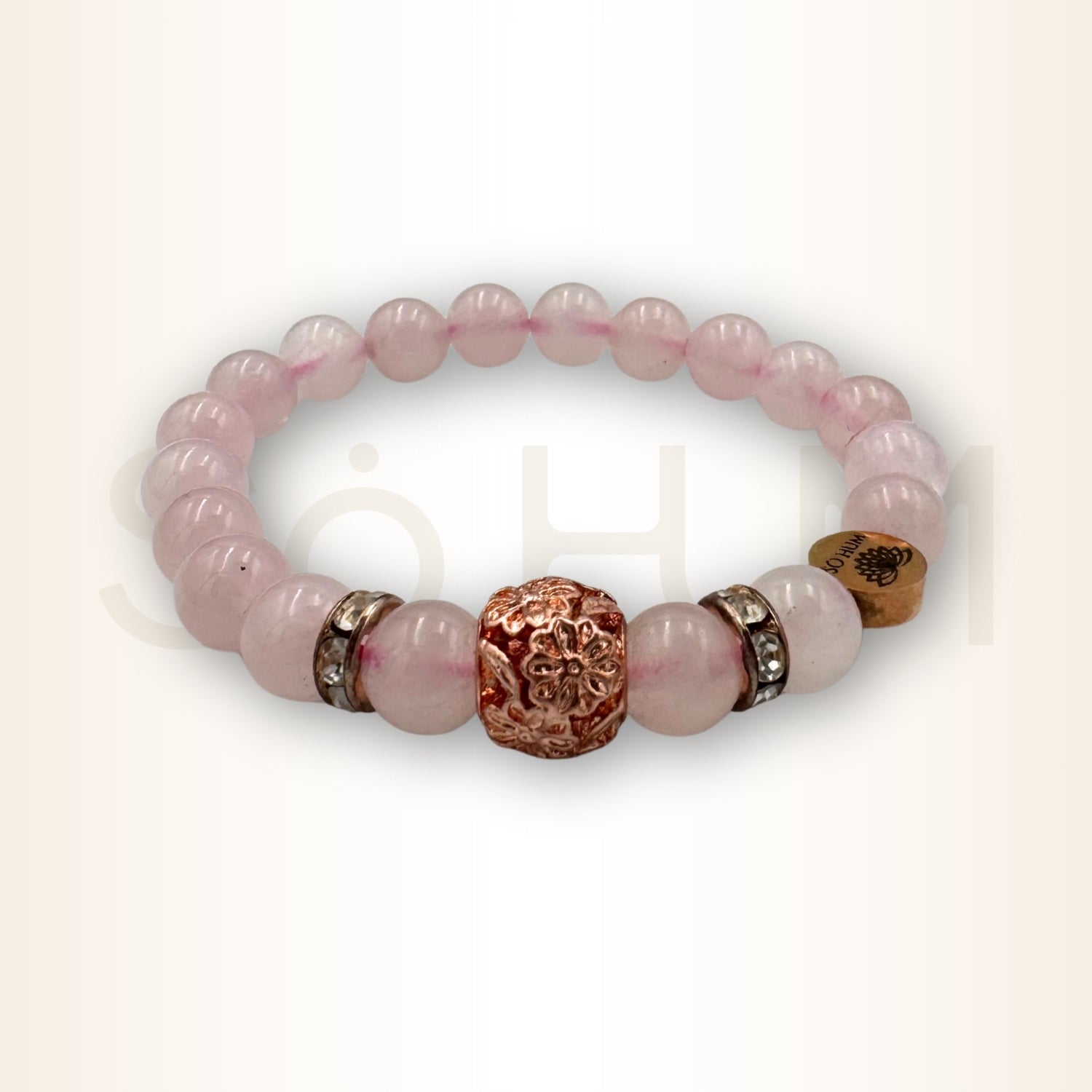 Brățara cu cuarț roz și Flori de piersic pentru puterea dragostei
