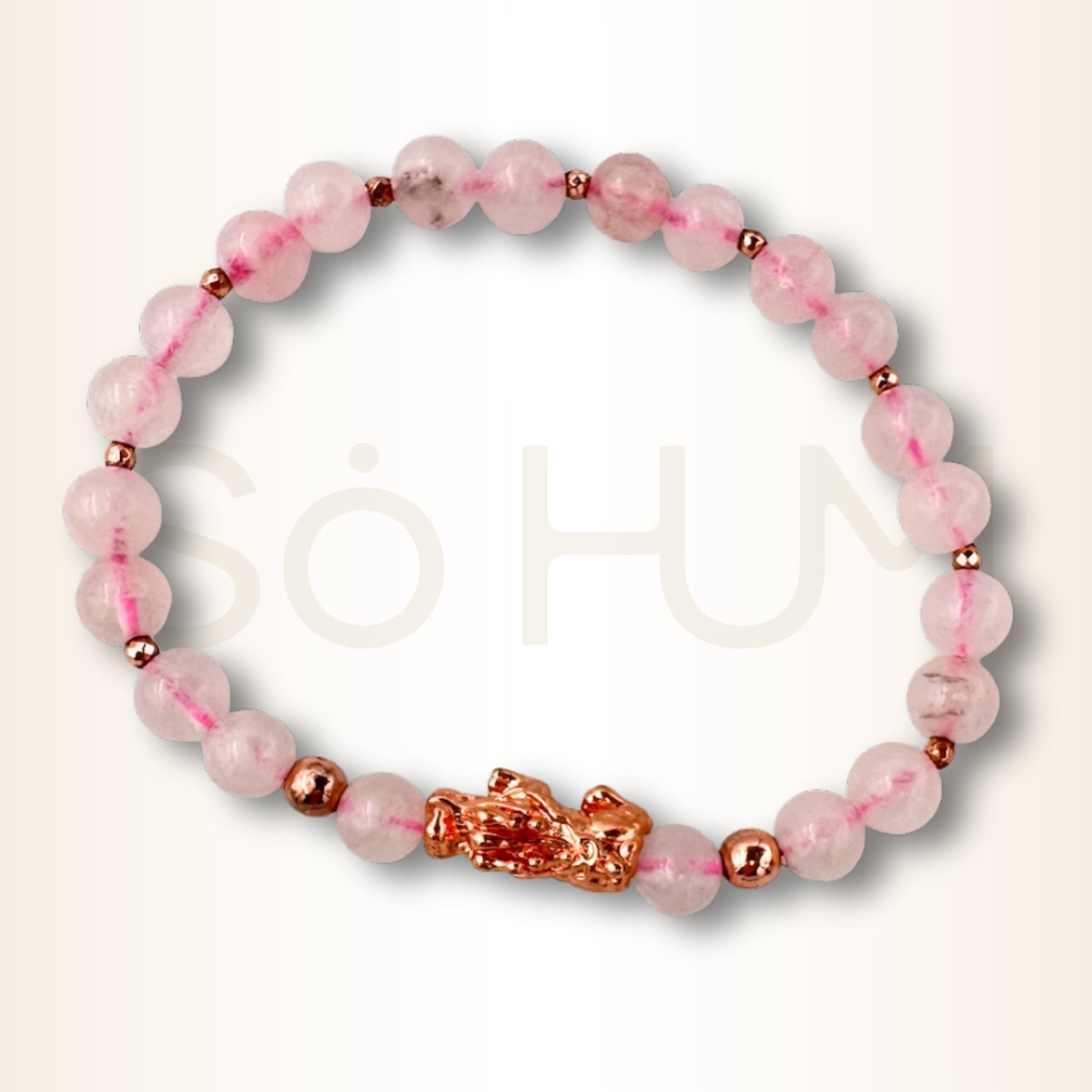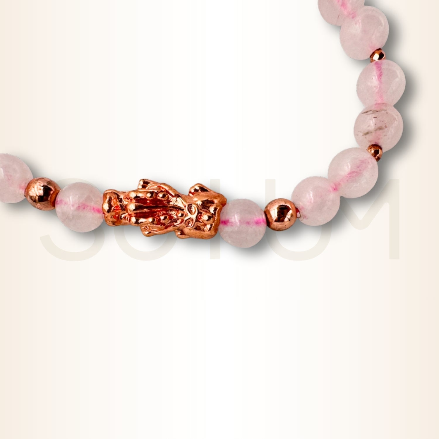 Brățară cu Cuarț Roz și Pi Xiu pentru noroc financiar și noroc în dragoste