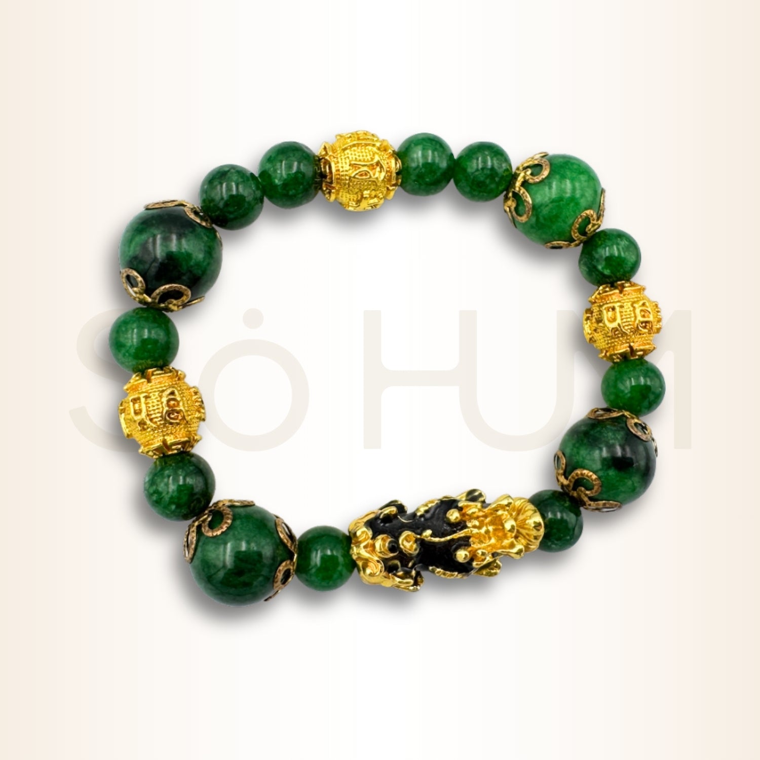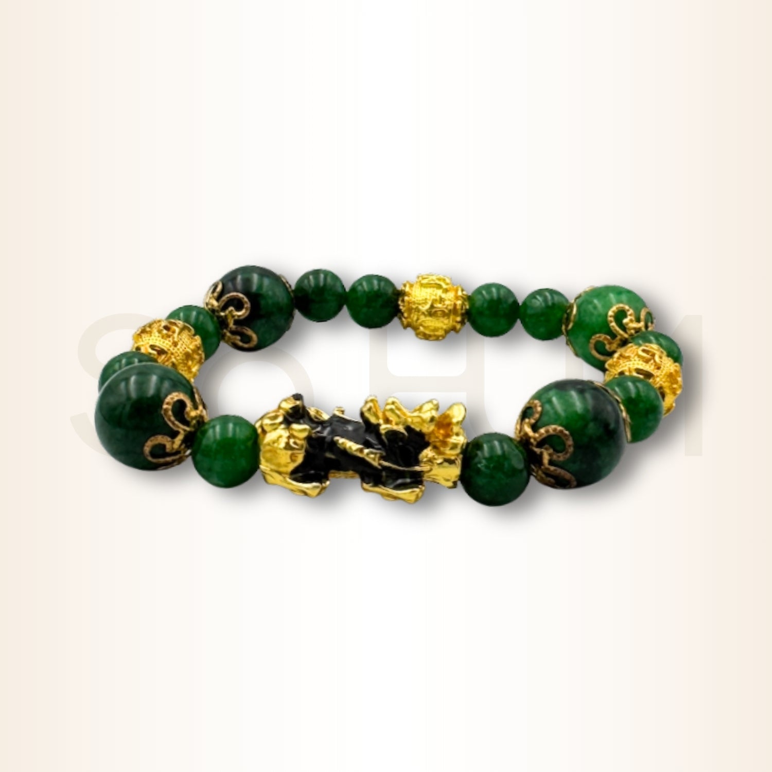 Brățară cu Jad verde și Pi Xiu pentru prosperitate și abundență