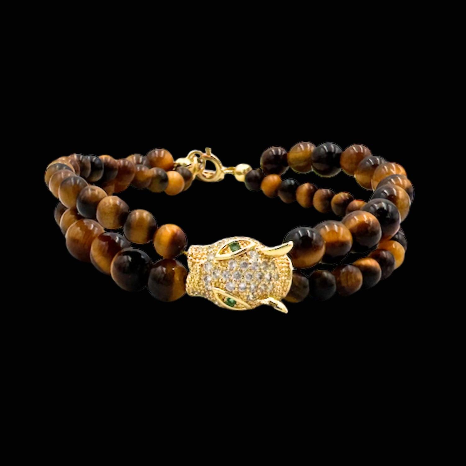Brățară cu Jaguar (Arhetip Șamanic) și Ochi de Tigru pentru forță și încredere în sine