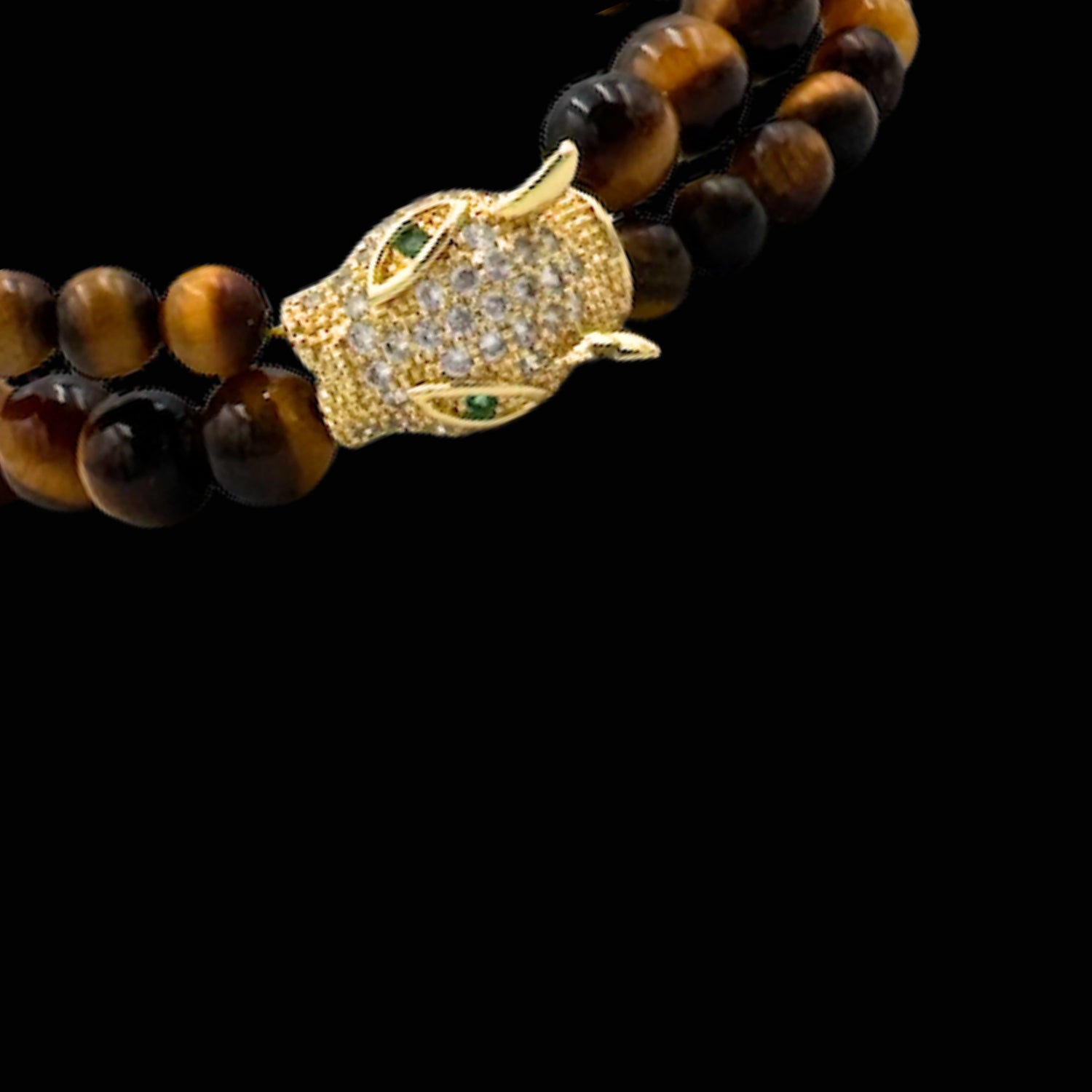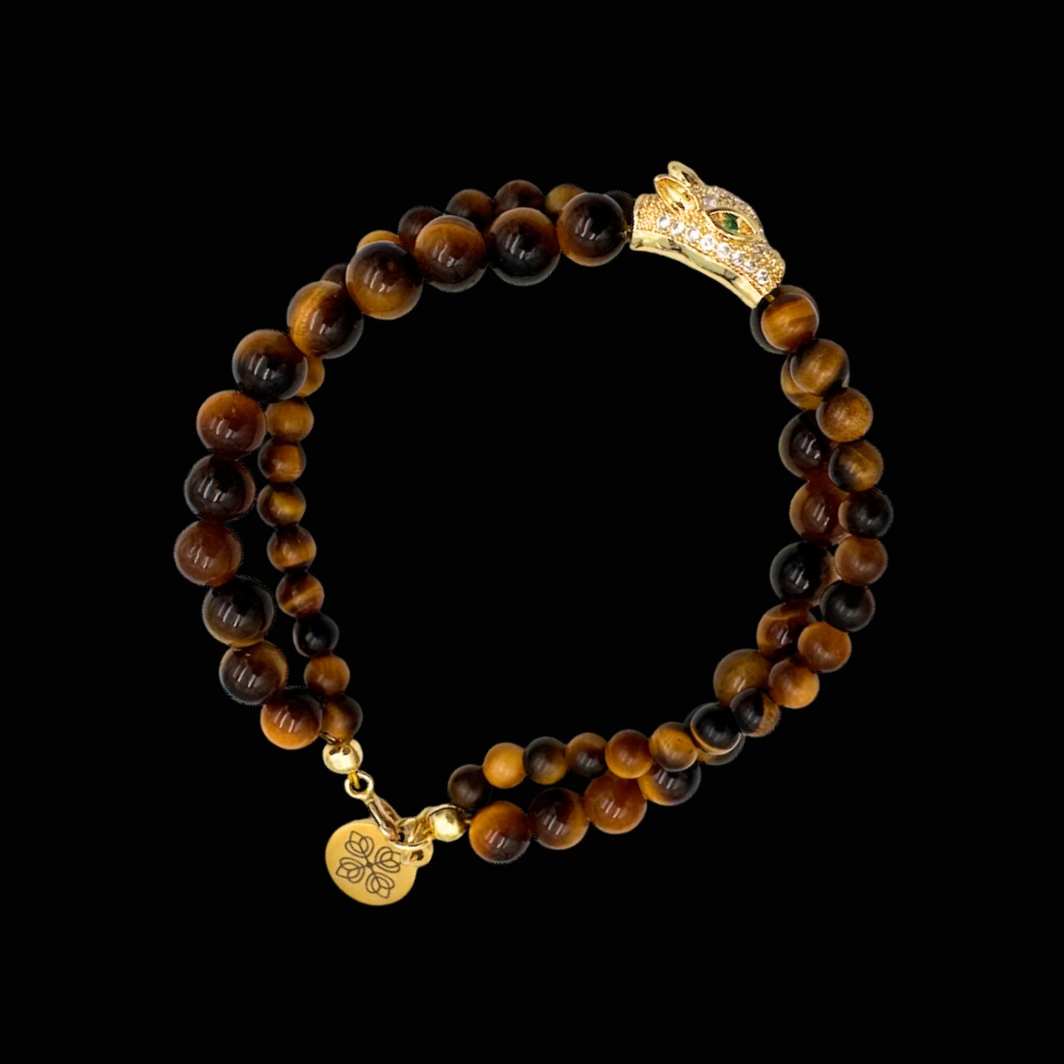 Această brățară îmbină energia arhetipală a Jaguarului, simbol al puterii personale în tradițiile șamanice, cu dinamismul și protecția oferite de Ochiul de Tigru, un cristal recunoscut pentru capacitatea sa de a întări încrederea în sine și stabilitatea emoțională. Este o brățară dedicată celor care își doresc să funcționeze cu mai mult curaj, determinare și claritate în momentele în care presiunea sau schimbările pot afecta direcția personală.