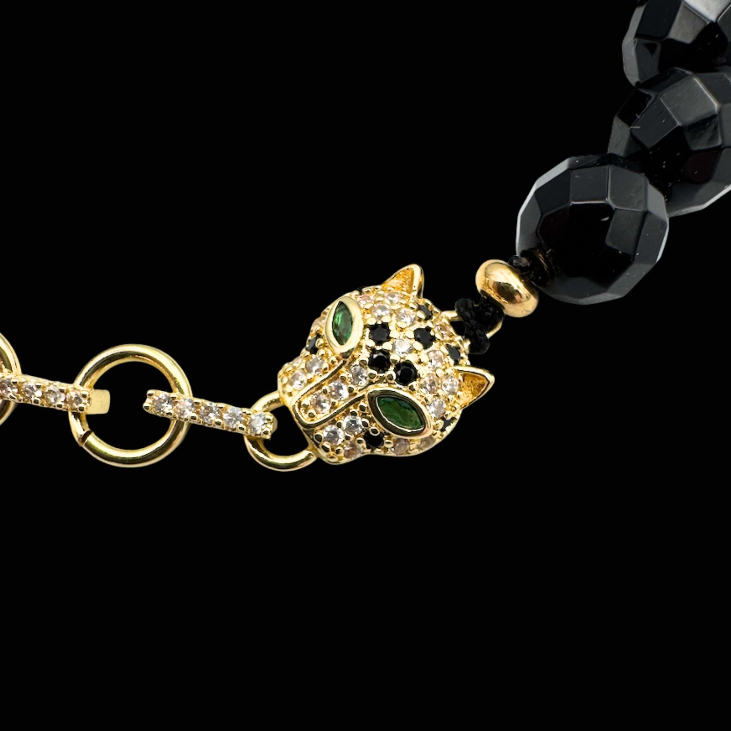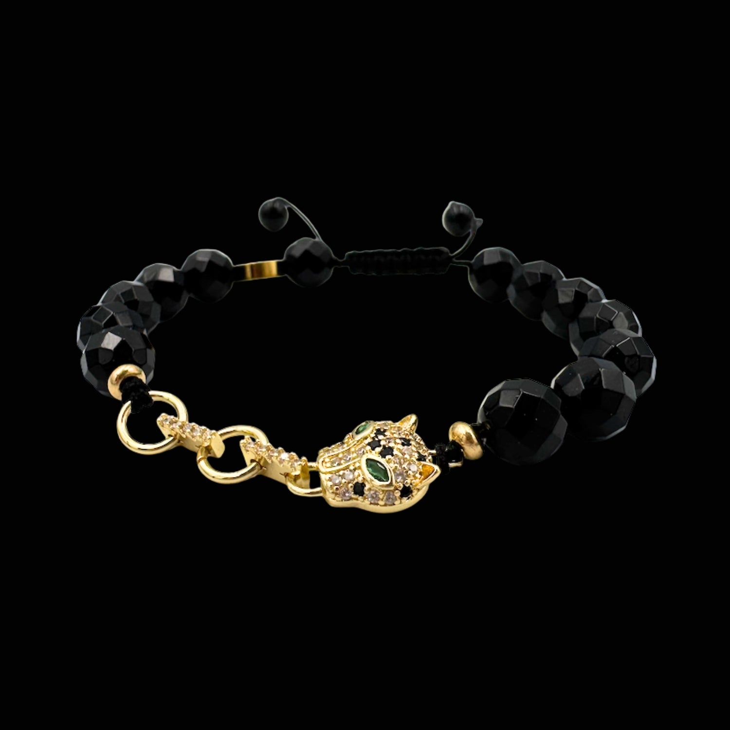 Brățară cu Jaguar (Arhetip Șamanic) și Onix Negru fațetat pentru forță și istețime