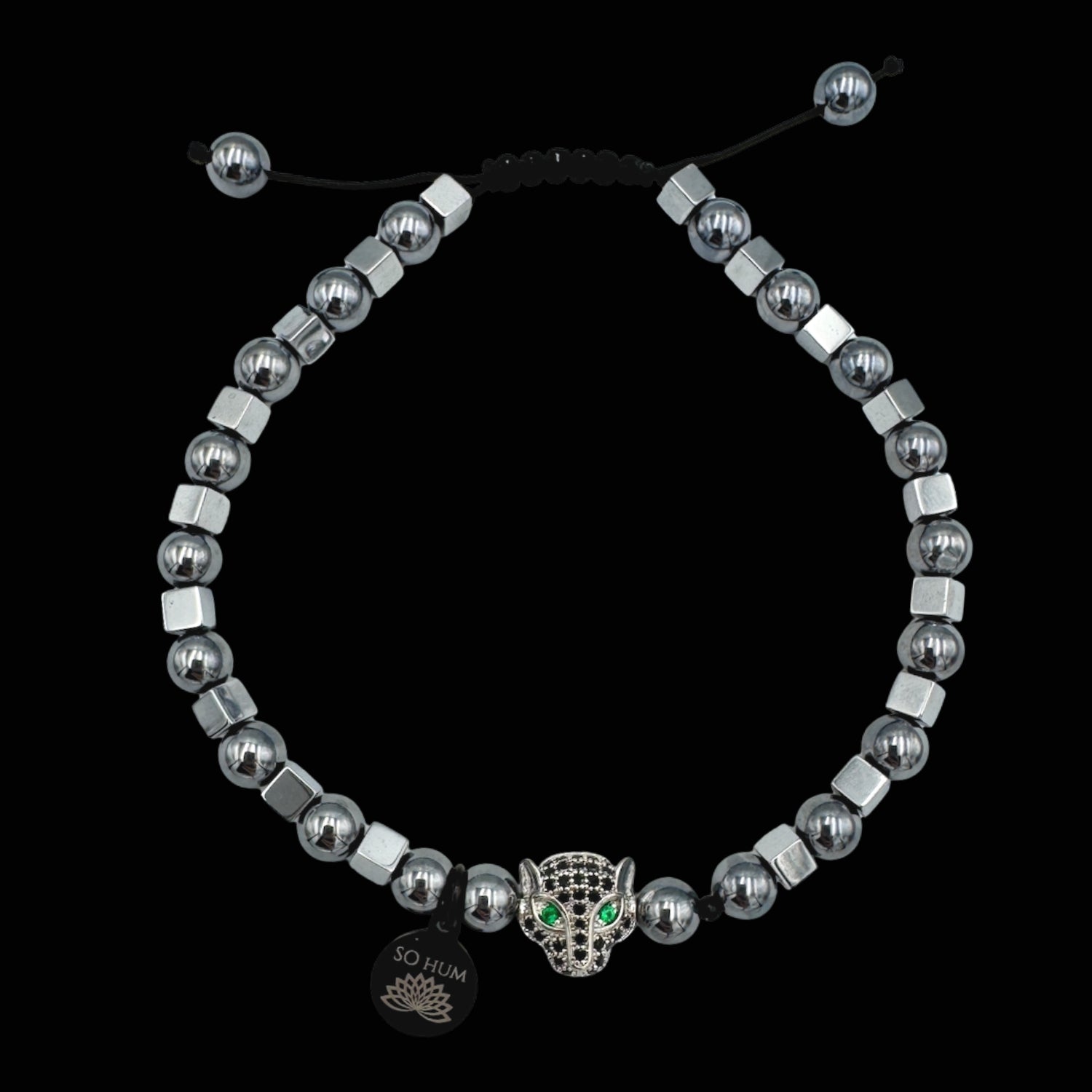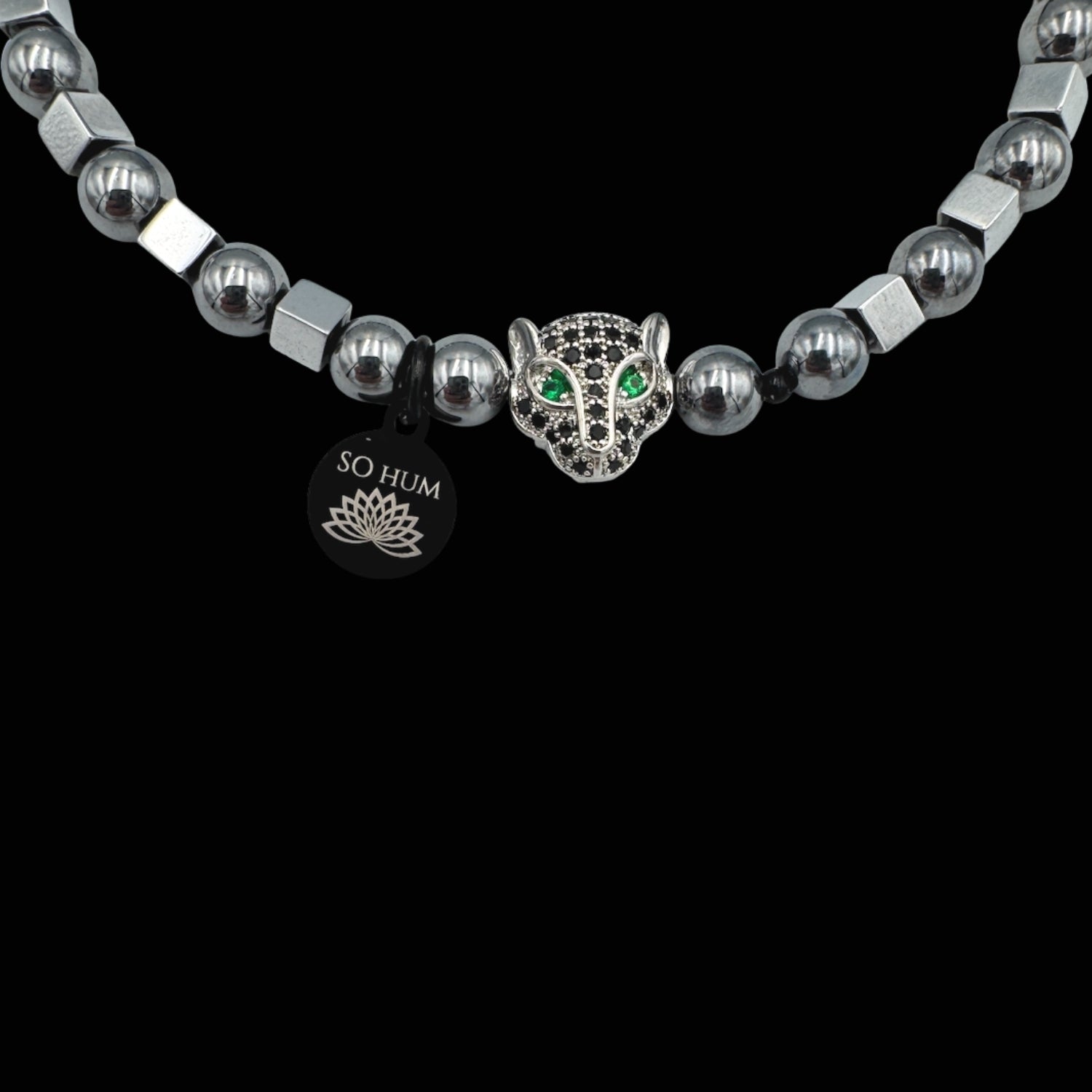 Această brățară poartă combinația dintre trei energii puternice: Jaguarul, arhetipul șamanic al curajului și al instinctului pur, Terahertz-ul, piatra modernă a clarității mentale, și Hematitul, unul dintre cele mai cunoscute cristale pentru stabilitate și ancorare. Împreună, creează un talisman pentru momentele în care ai nevoie de determinare, protecție interioară și direcție fermă.