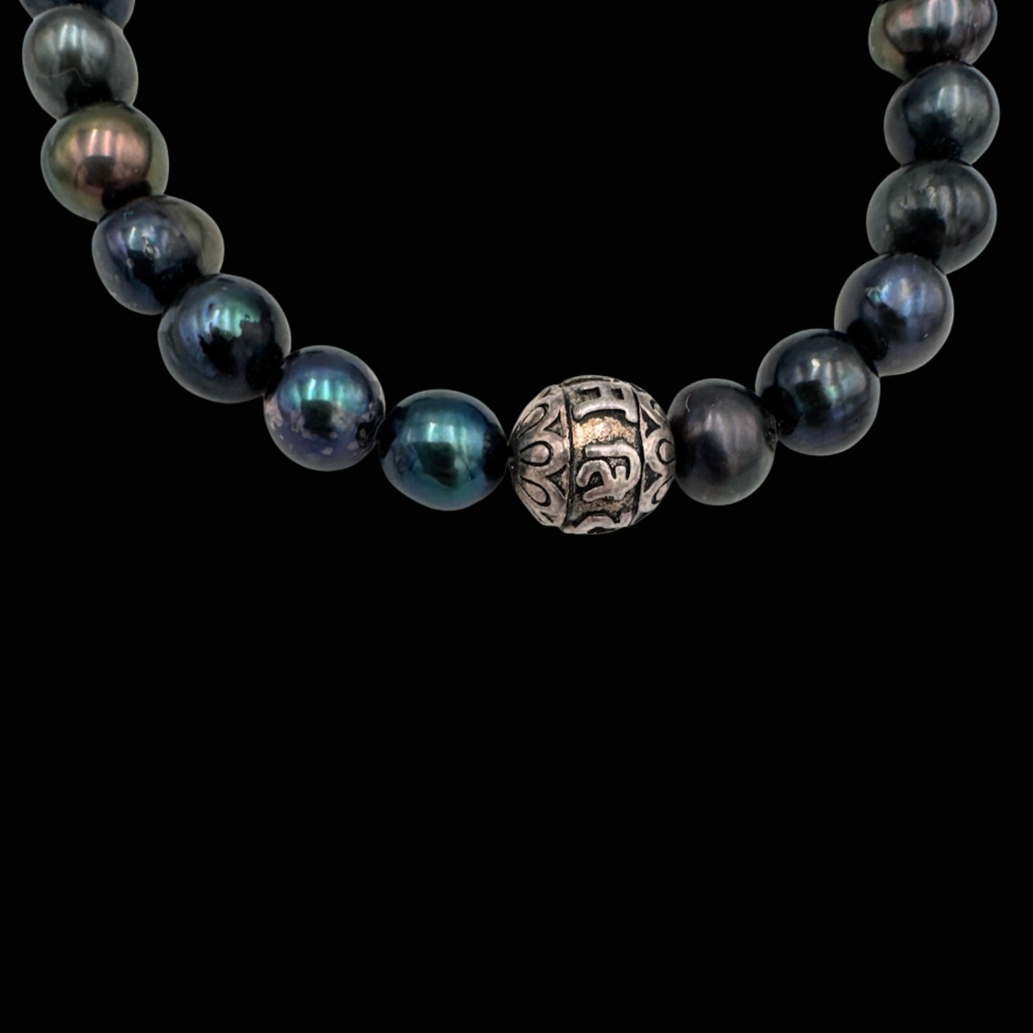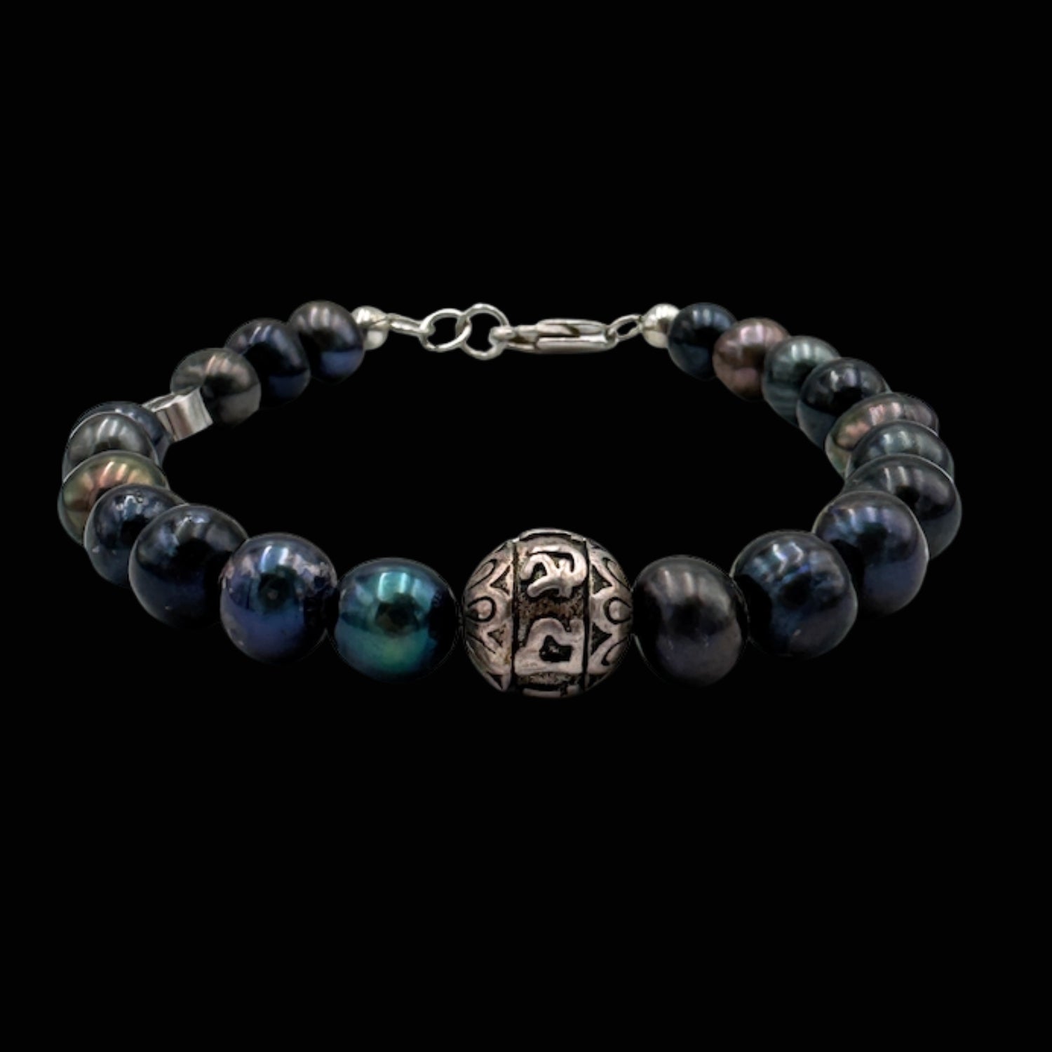 Brățara îmbină mantra Om Mani Padme Hum, unul dintre cele mai importante simboluri ale tradiției budiste tibetane, cu Perlele negre naturale, cunoscute pentru rezistența și structura lor complexă. Om Mani Padme Hum reprezintă de secole o formulă sacră folosită pentru sprijin emoțional, claritate mentală și protecție energetică. În cultura tibetană, purtarea mantrei aproape de corp este considerată o modalitate de a menține mintea într-o stare calmă, orientată spre luciditate și echilibru, mai ales atunci când apar situații tensionate sau schimbări bruște în ritmul de zi cu zi. Simbolurile tibetane sunt gravate în stilul tradițional întâlnit pe roțile de rugăciune și pe obiectele purtate de practicanții budismului tantric, ceea ce conferă brățării un caracter autentic și o funcție clară: susținerea stărilor interioare care favorizează liniștea și discernământul.