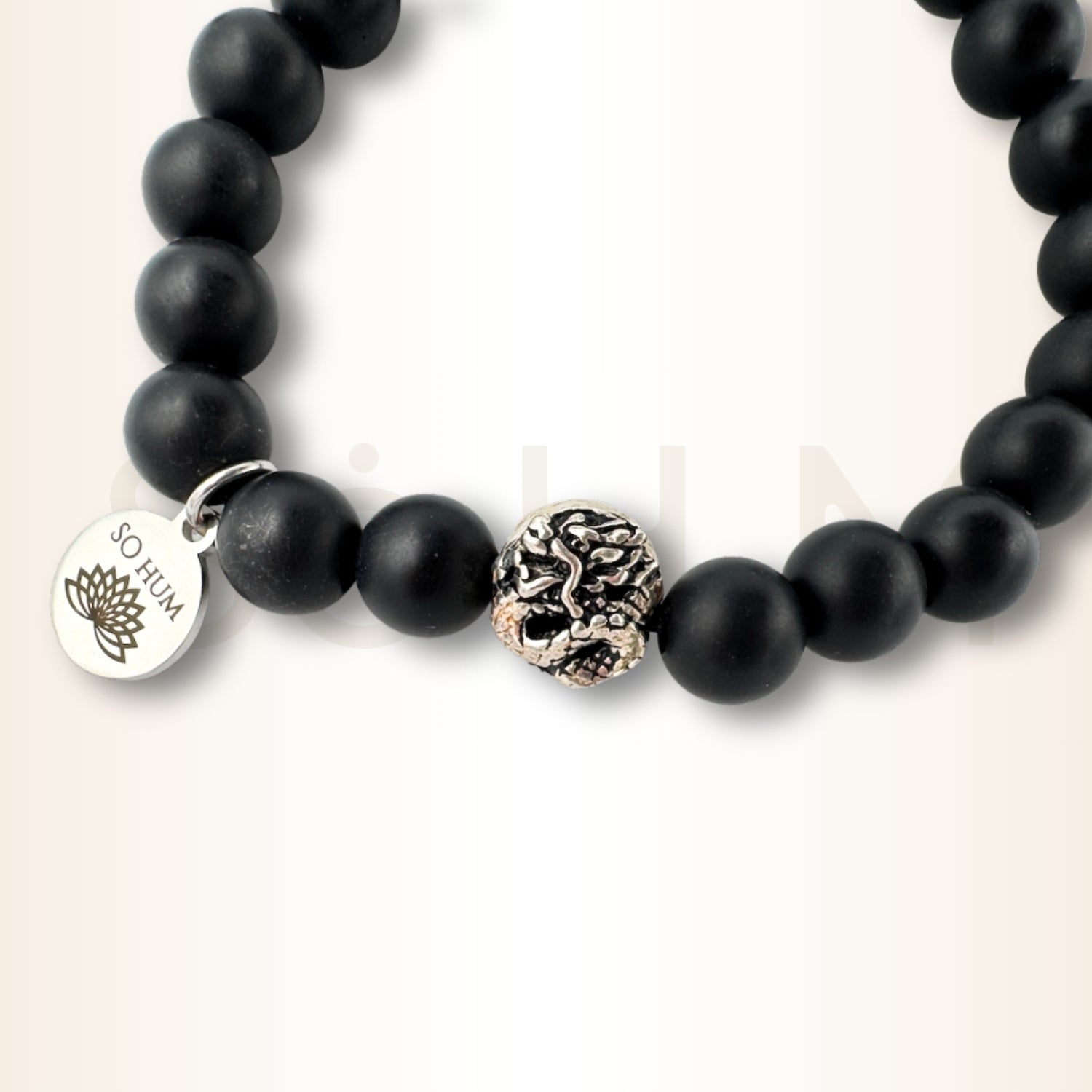 Brățară cu Onix mat și Dragon pentru protecție și forță