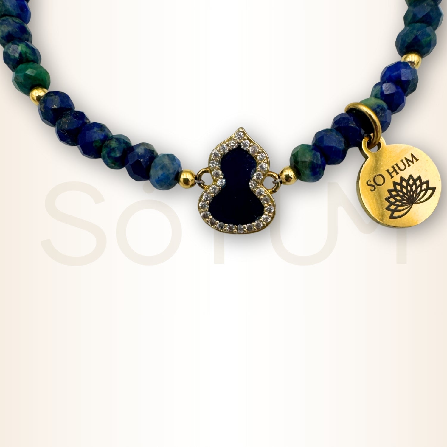 Brățară cu Wu Lou și cristale fațetate de Azurit-Malachit pentru protecția sănătății