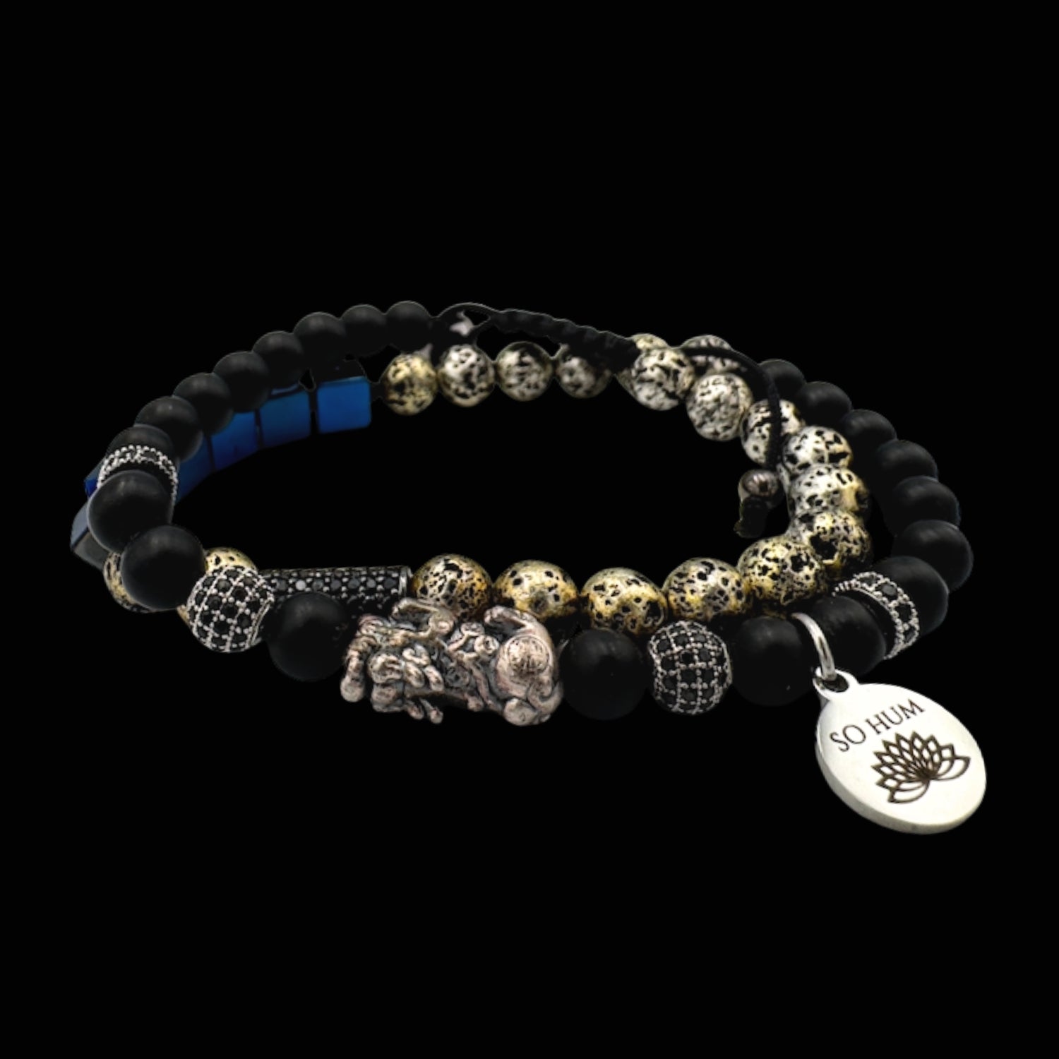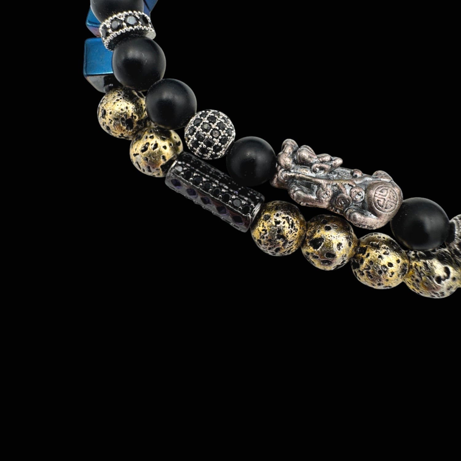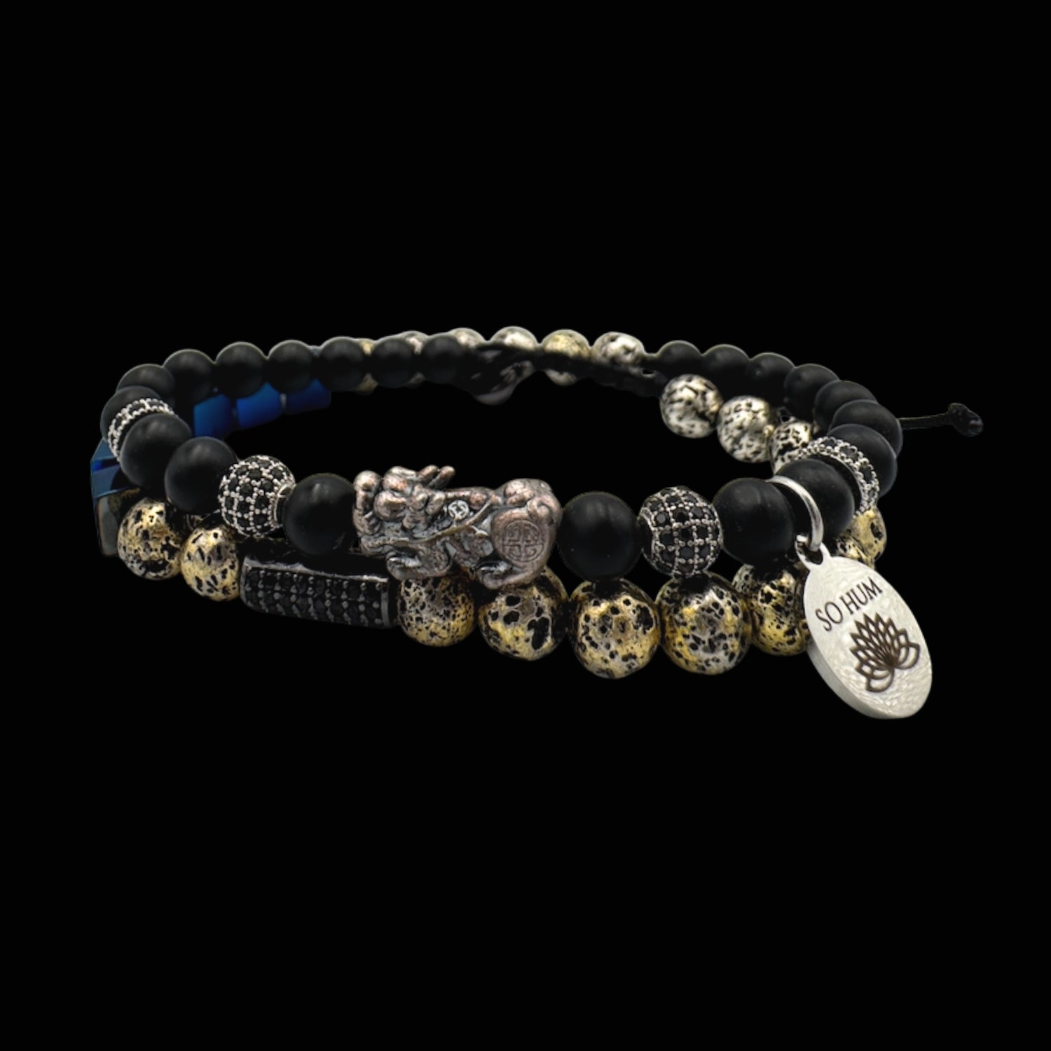 Această brățară dublă îmbină energia puternică a lui Pi Xiu cu forța protectoare și stabilizatoare a trei pietre apreciate pentru influența lor asupra prosperității: Onix, Pirită și Hematit. Împreună, formează un talisman complex pentru atragerea banilor, păstrarea resurselor și menținerea unui echilibru interior puternic.