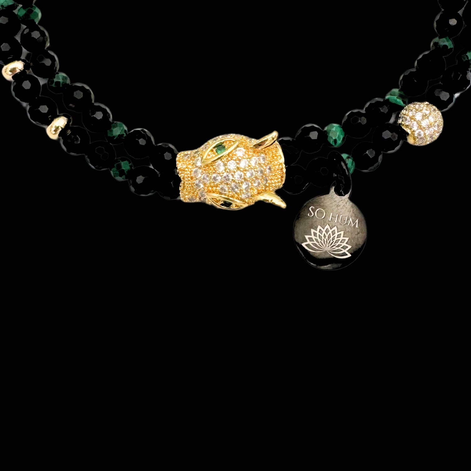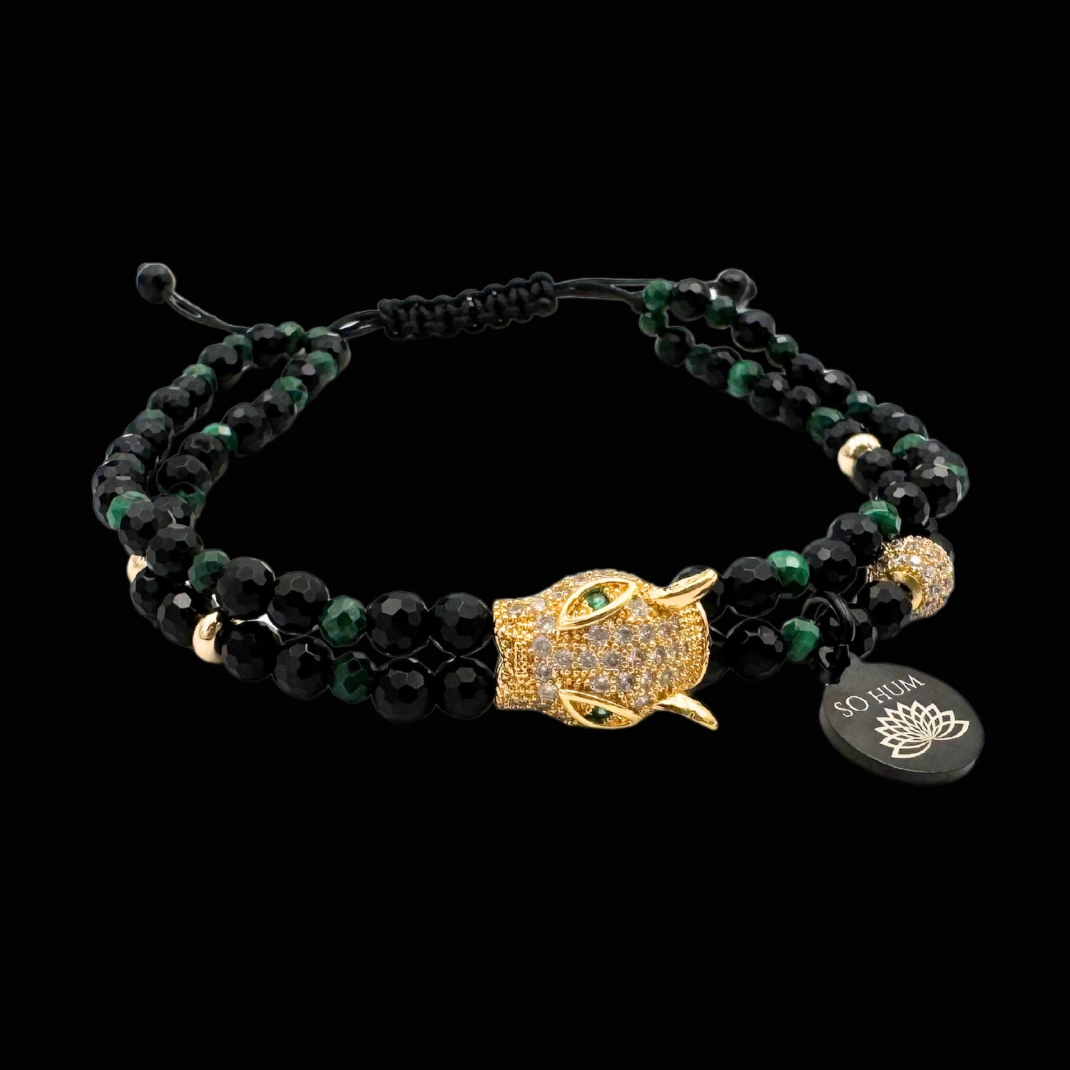 Brățară cu Arhetipul Șamanic al Jaguarului, cu Onix fațetat și Malachit fațetat pentru protecție și putere