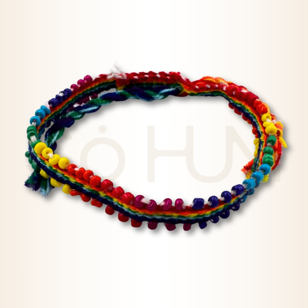 Culorile curcubeului sunt asociate în culturile andine cu protecția energetică, reînnoirea interioară și forța identității personale, fiind purtate în contexte ritualice, sărbători, ceremonii sau momente de transformare personală. Brățara aduce împreună simbolistica chakrelor și tradiția peruană a țesăturilor colorate, rezultând un accesoriu care susține o stare de echilibru interior și un mod mai conștient de a naviga emoțiile și experiențele zilnice.