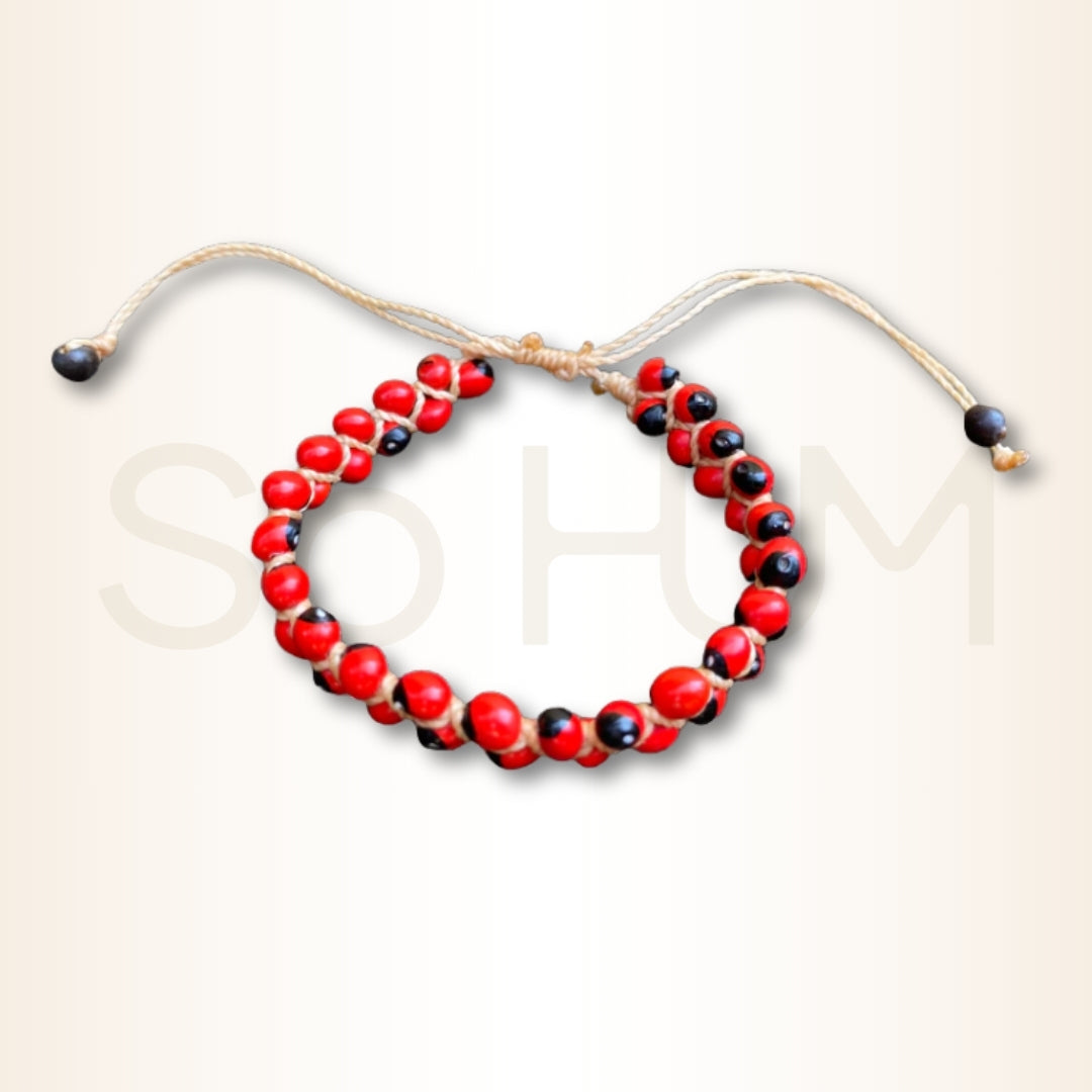 Brățară peruană împletită cu semințe Huayruro mici (2 rânduri) pentru protecție și prosperitate