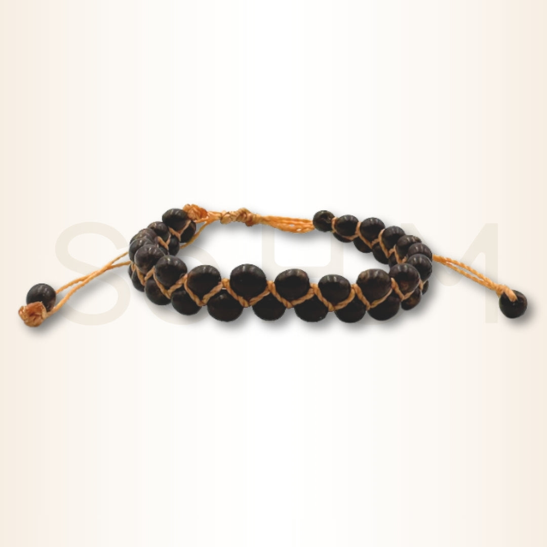 Brățară peruană împletită (2 rânduri) maro cu semințe Achira pentru protecție