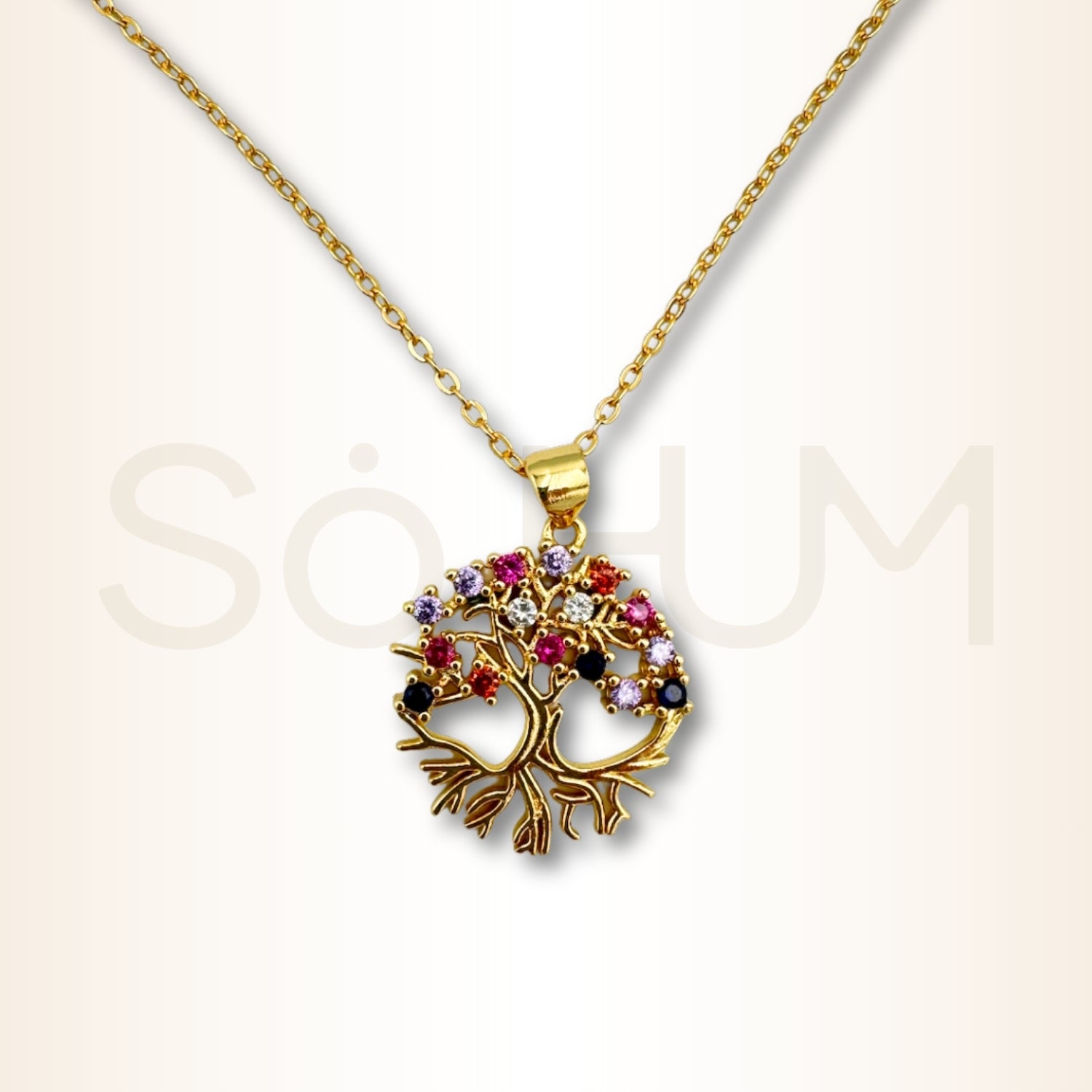 Modelul colierului pune accent pe ramurile delicate care se ridică într-o formă unitară, iar cristalele colorate din coroană transmit dinamism, vitalitate și energie regeneratoare. Culorile diferite trimit la varietatea de experiențe care construiesc un parcurs de viață, iar distribuția lor echilibrată sugerează maturitate, înțelepciune și deschidere față de lume. Întreaga compoziție oferă impresia unui talisman menit să susțină stări de claritate, putere interioară și compasiune.