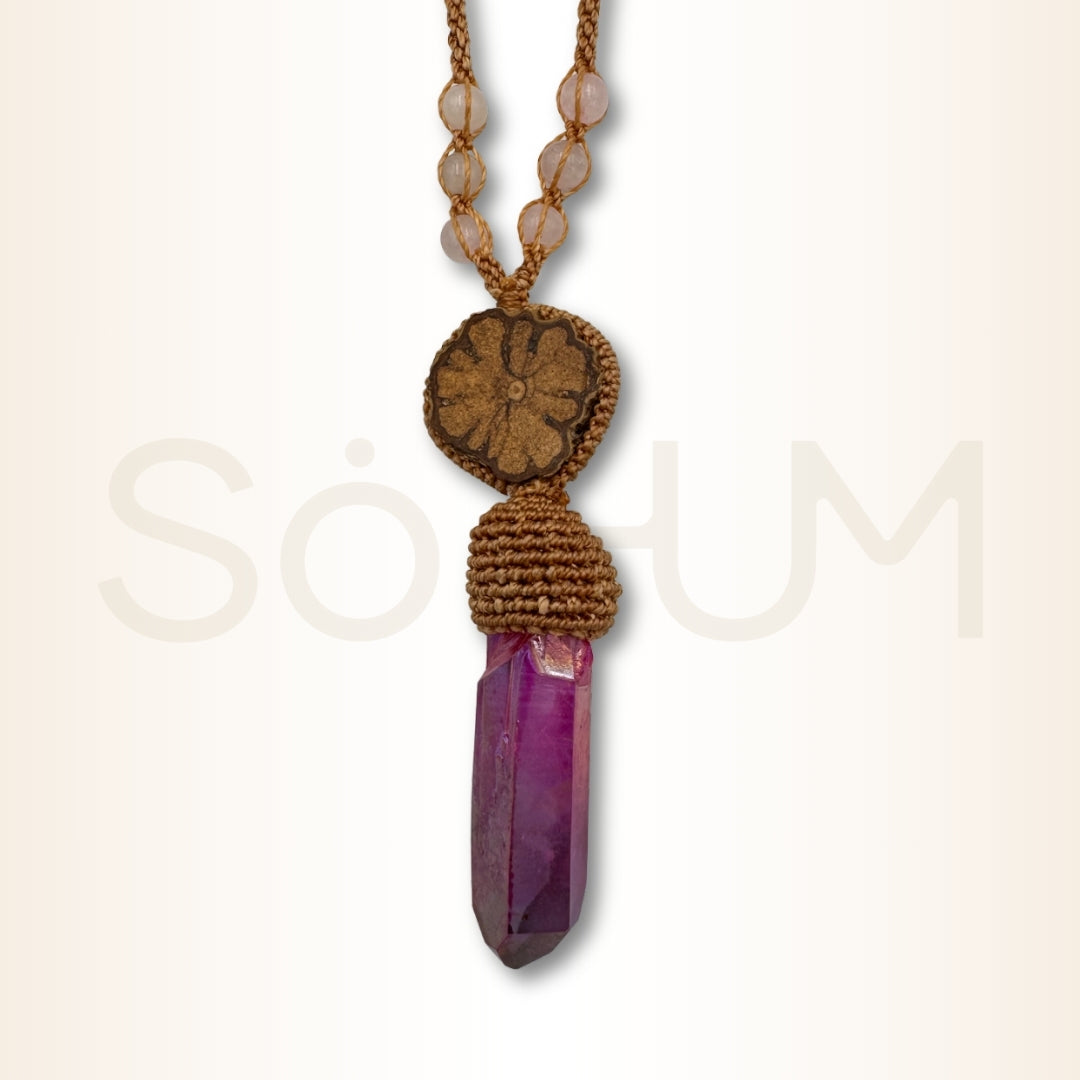 Colier cu Cuarț Roz tratat termic pentru vindecare emoțională, armonie și deschidere afectivă