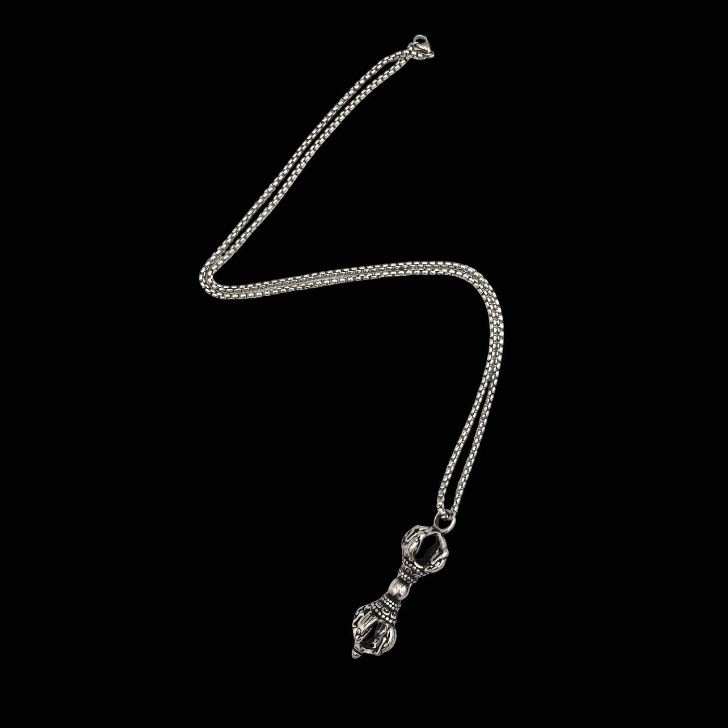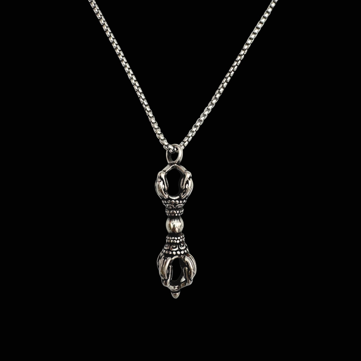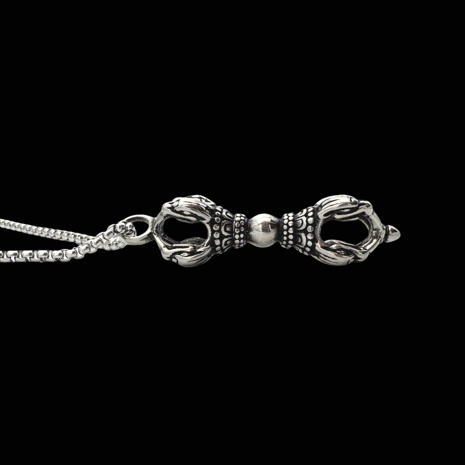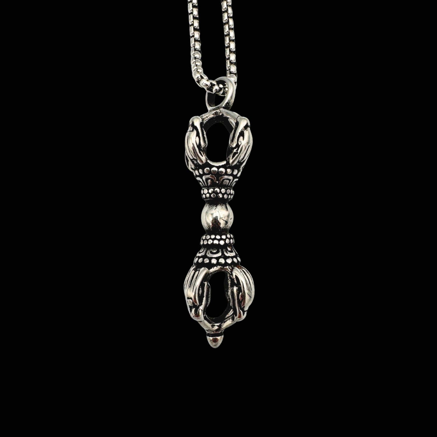 În practica budistă, Dublul Vajra este privit ca un talisman care sprijină ordinea interioară, întărește hotărârea personală și protejează spațiul energetic al celui care îl poartă. Simbolul este folosit pentru a stabiliza mintea, pentru a întări curajul și pentru a crea un câmp protector puternic în jurul purtătorului. Designul său sculptat în detalii fine sugerează forță, rezistență și claritate, fiind potrivit pentru perioade solicitante sau pentru etape de transformare.