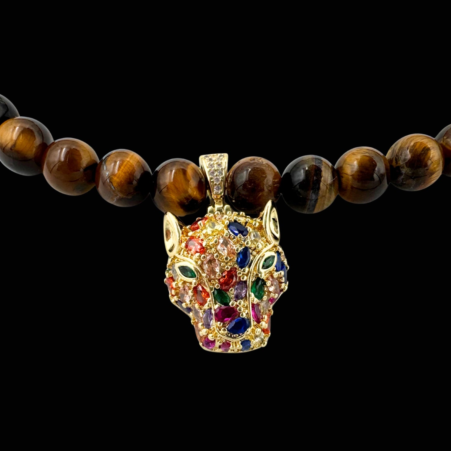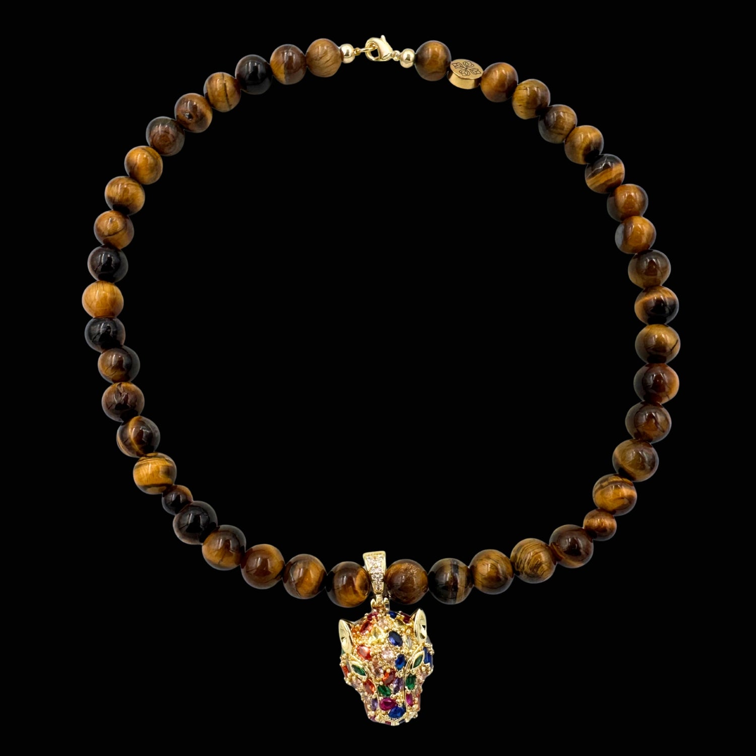 Colier cu Jaguar (Arhetip Șamanic) și Ochi de tigru pentru forță și încredere în sine