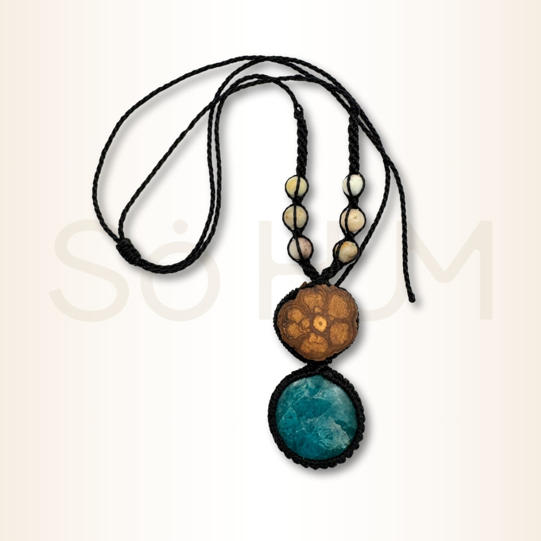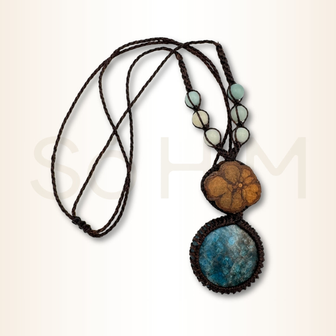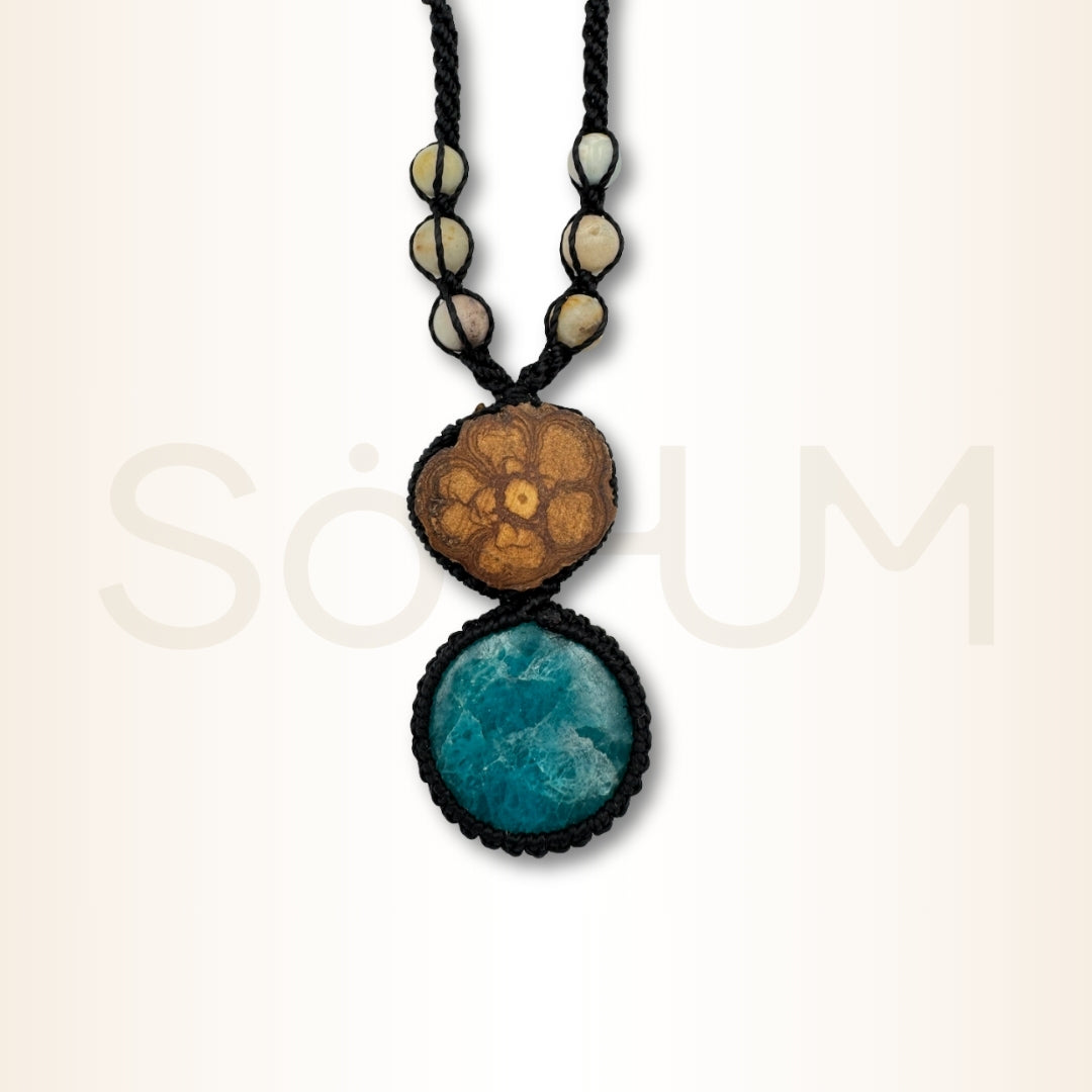 Colier cu Lemn de Ayahuasca și Apatit pentru comunicare clară, încredere și eliberarea blocajelor emoționale