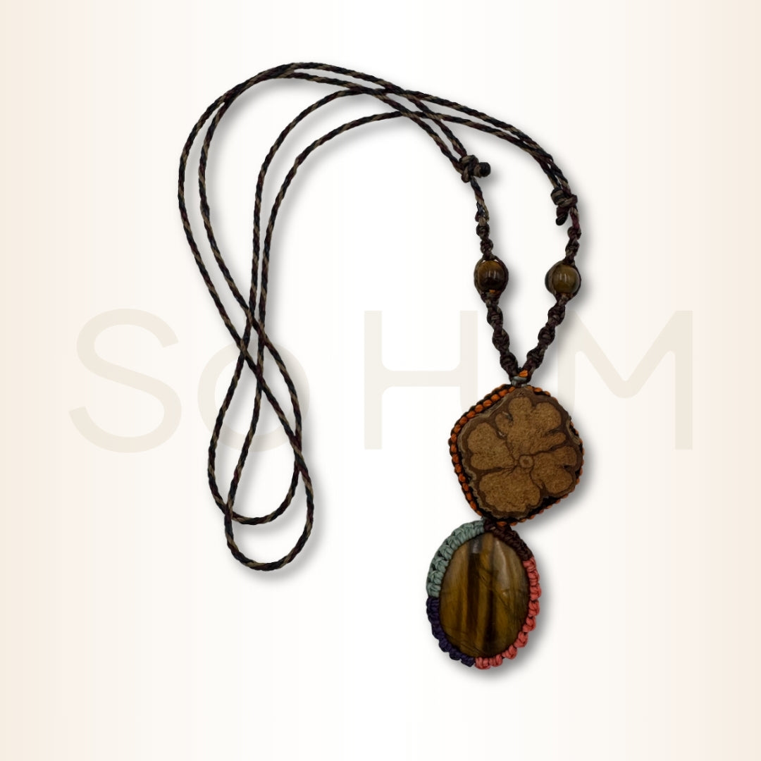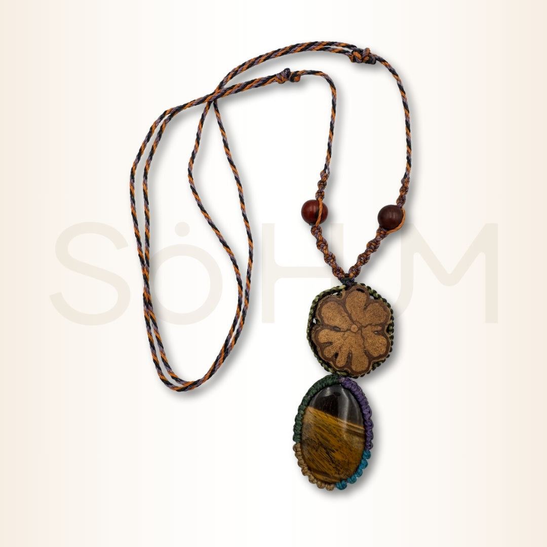 Colier cu Lemn de Ayahuasca și Ochi de Tigru pentru protecție, încredere și forță personală
