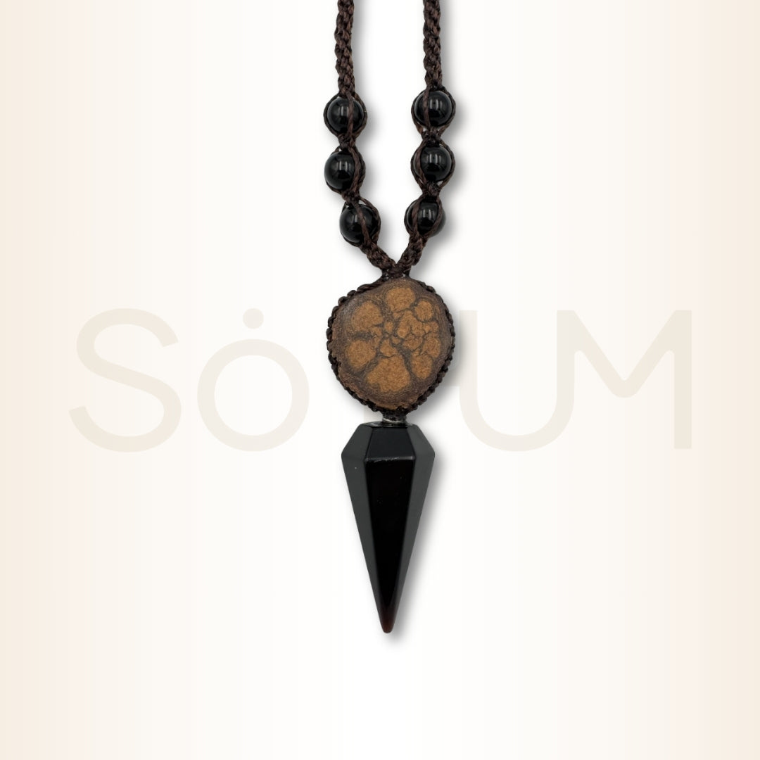 Material: Lemn de Ayahuasca, Onix, fir textil împletit manual