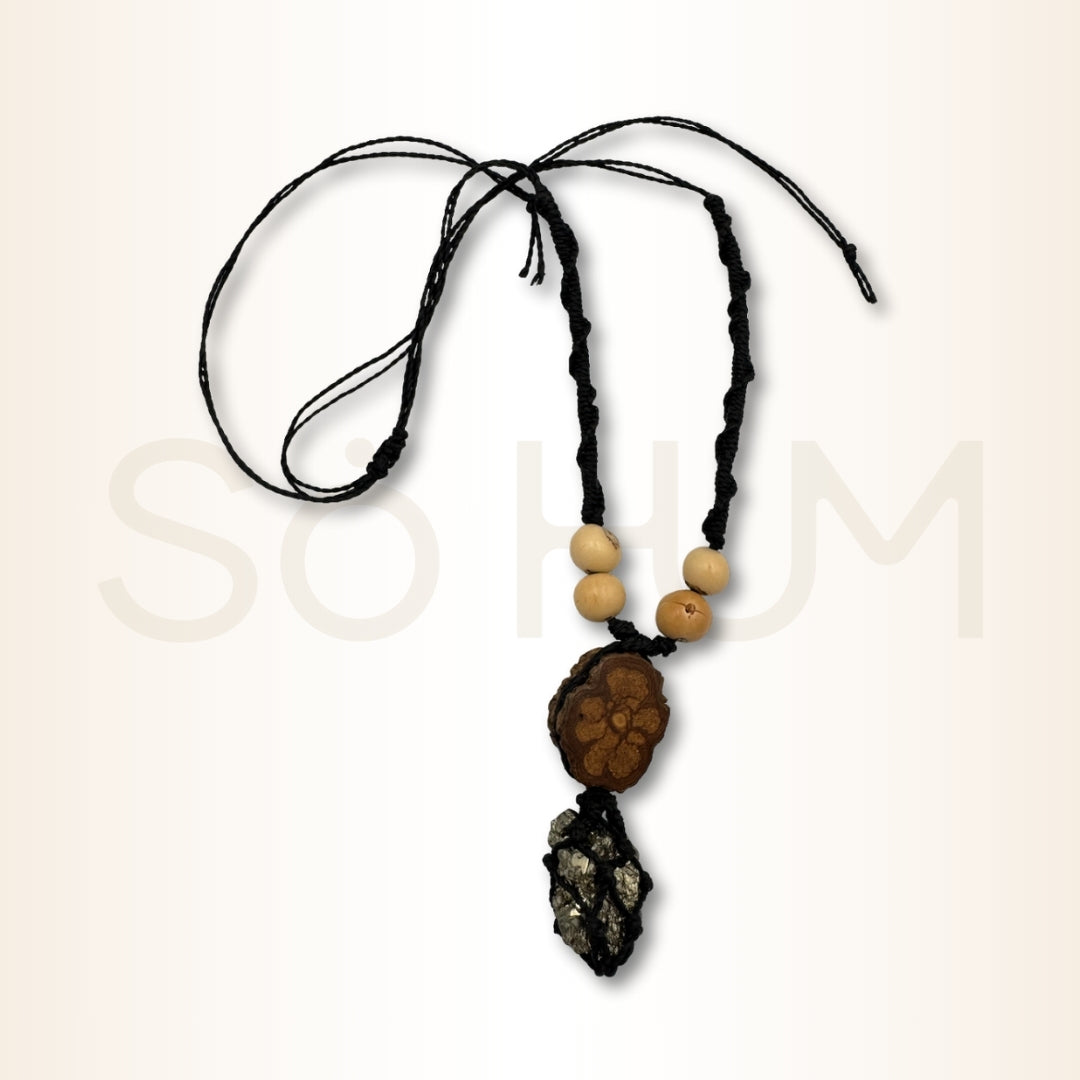 Colier cu Lemn de Ayahuasca și Pirită pentru vitalitate, claritate și încredere personală