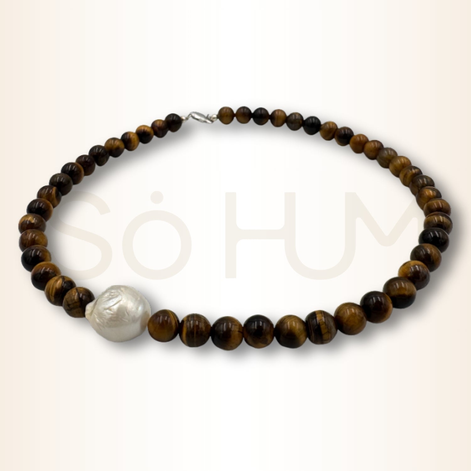 Colier cu Ochi de Tigru și perlă naturală Baroque pentru putere, forță și rezolvări rapide