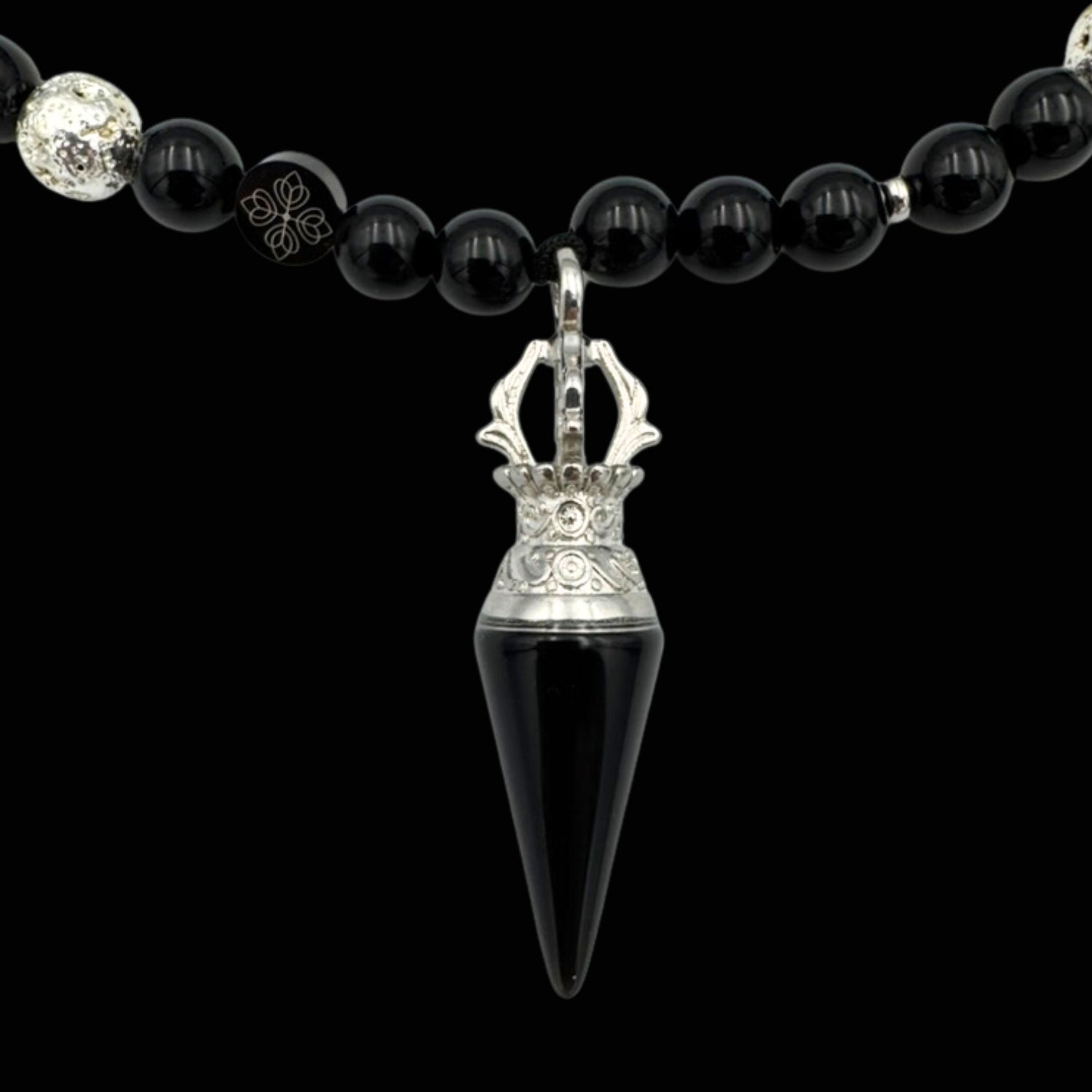 Colier cu Vajra–Phurba, Onix și Rocă vulcanică pentru protecție, forță și claritate