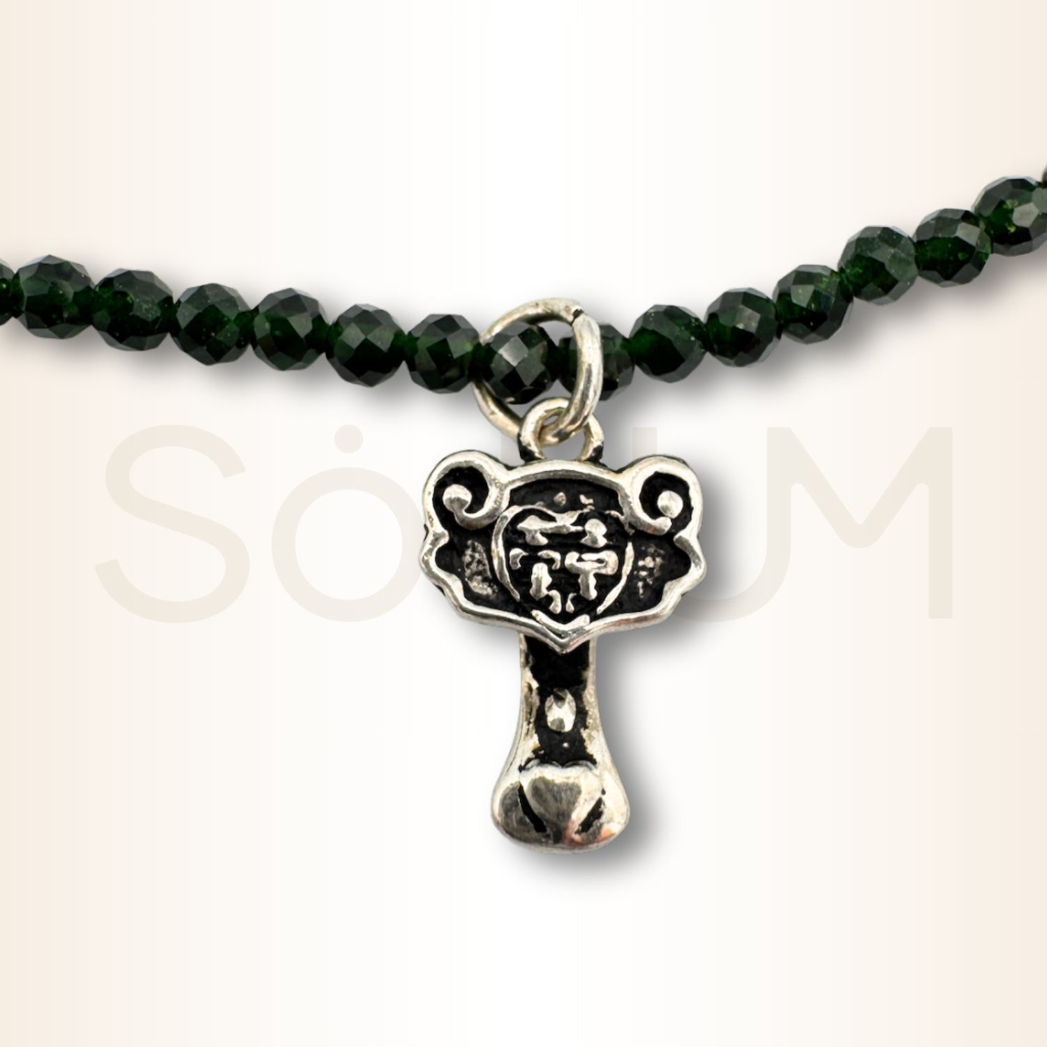 Colierul cu zirconiu verde și simbol Ru Yi susține dezvoltarea succesului profesional, afirmarea autorității personale și menținerea unei direcții clare în parcursul decizional. Asocierea dintre vibrația echilibrată a zirconului verde și semnificația tradițională a simbolului Ru Yi creează o energie coerentă orientată spre creștere constantă, stabilitate și putere de acțiune bine direcționată.