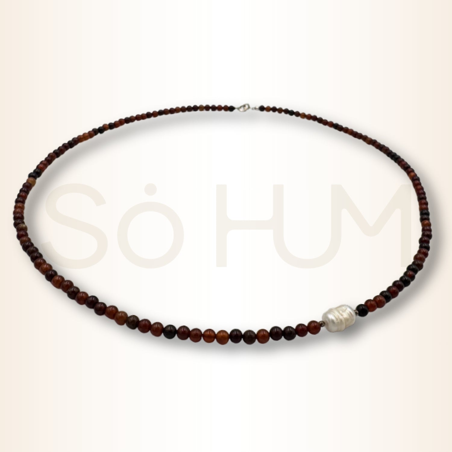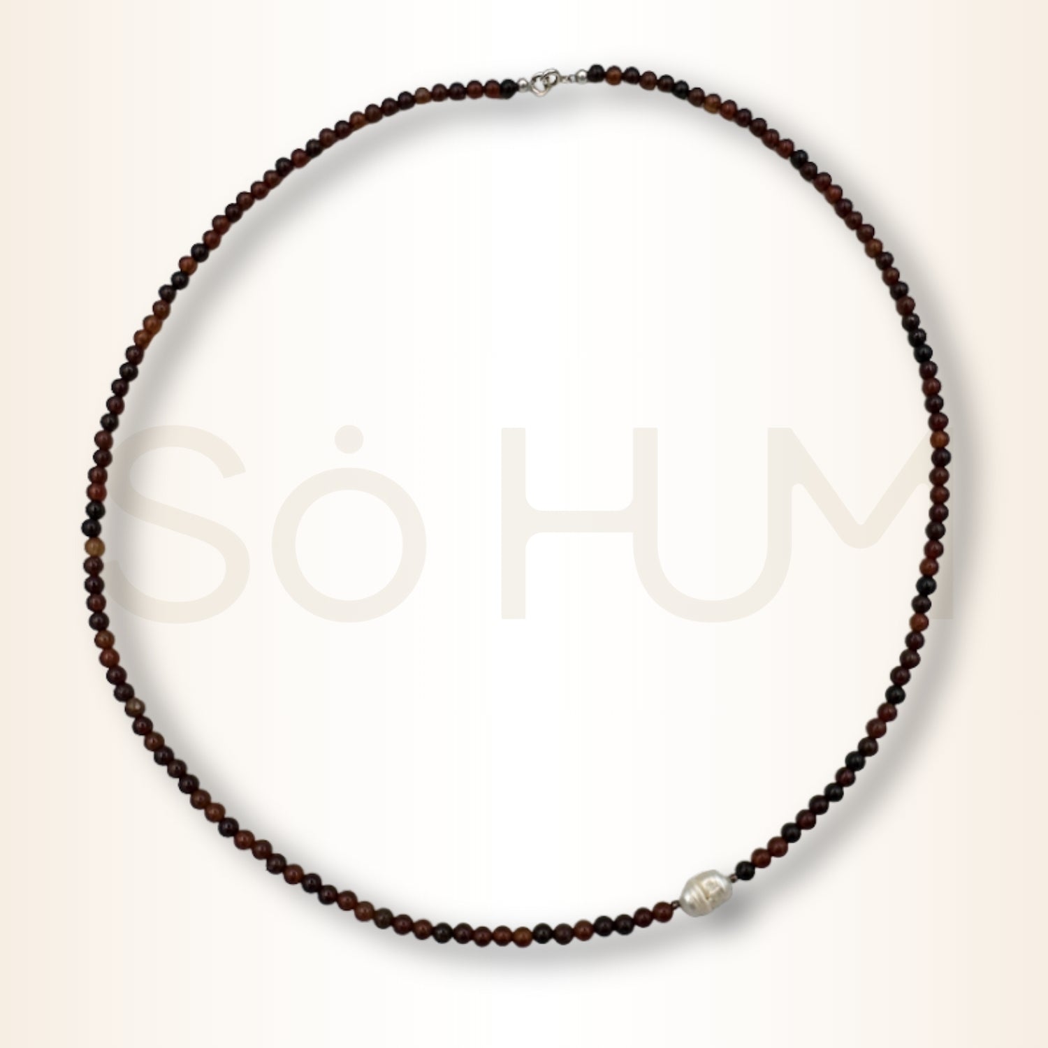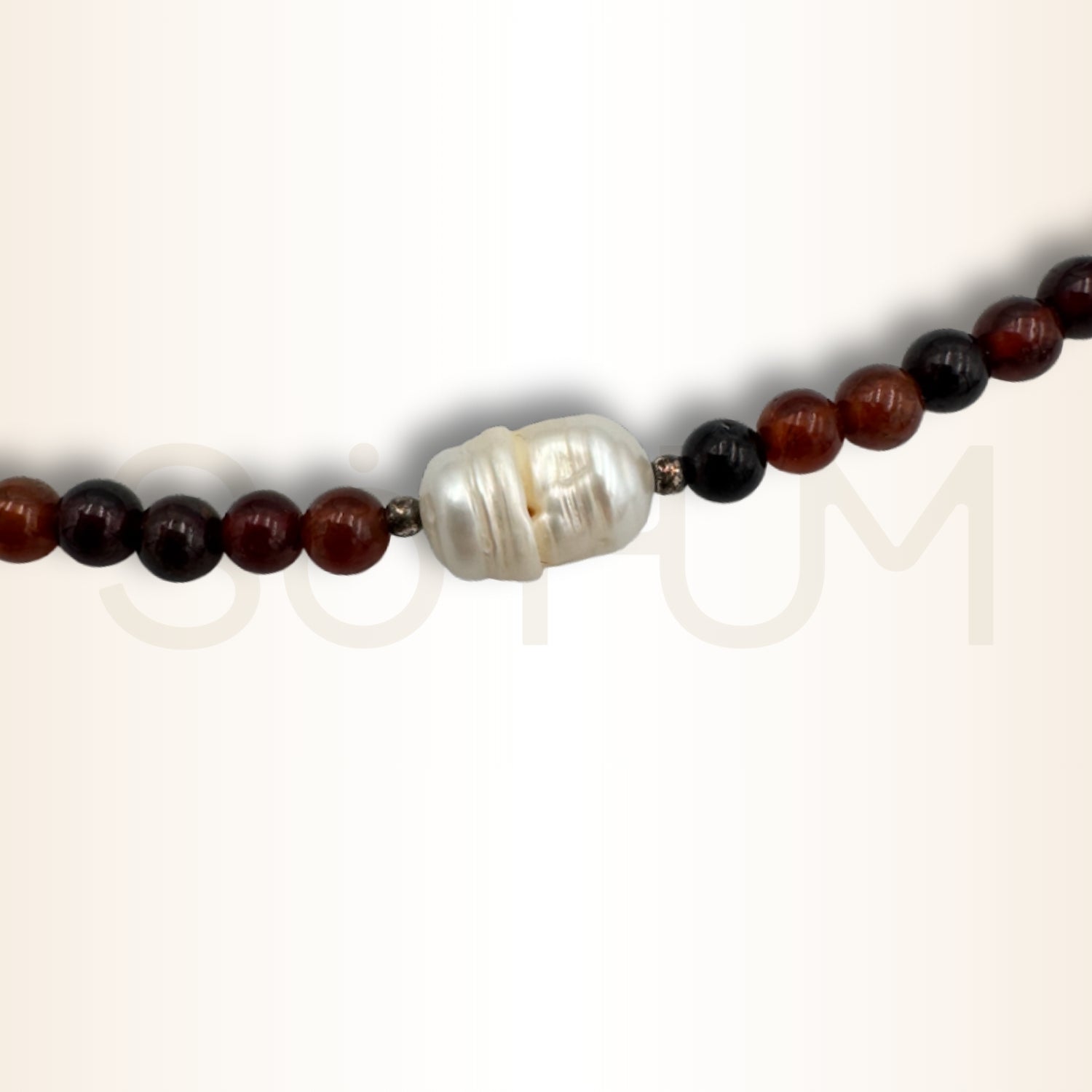 Perla naturală Baroque adaugă o notă de echilibru, rafinament și deschidere sufletească. Simbol al feminității și al receptivității, perla armonizează energia granatului, permițând o manifestare a pasiunii dintr-un spațiu al înțelepciunii și clarității emoționale.