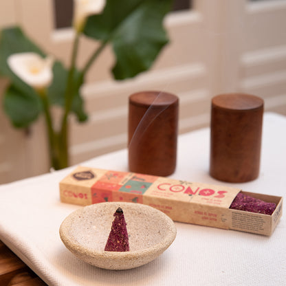 Conurile parfumate naturale de la Sagrada Madre îți oferă o experiență de aromaterapie unică, care îți înalță simțurile și transformă orice spațiu într-un sanctuar al liniștii și al stării de bine. Create din ingrediente naturale precum flori, fructe și uleiuri esențiale, aceste conuri sunt un real ajutor în echilibrarea emoțională, purificarea energetică și amplificarea vibrațiilor pozitive, susținând intențiile pe care tu le ai.