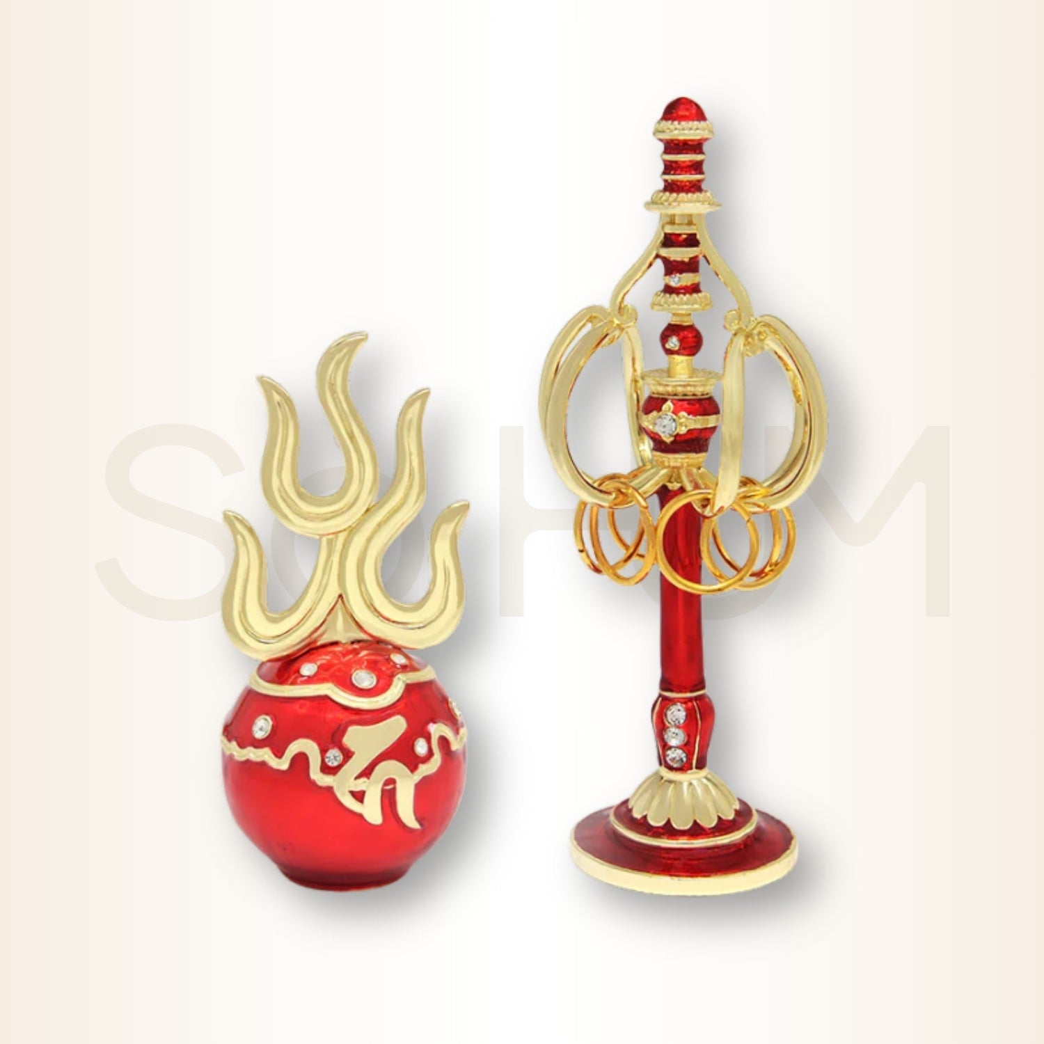 Mingea de Foc, inscripționată cu silaba-sămânță „Ha” a lui Ksitigarbha, emană energie protectoare intensă, în timp ce bastonul sacru exprimă hotărârea neclintită de a domina certurile, gelozia, trădările și conflictele juridice.